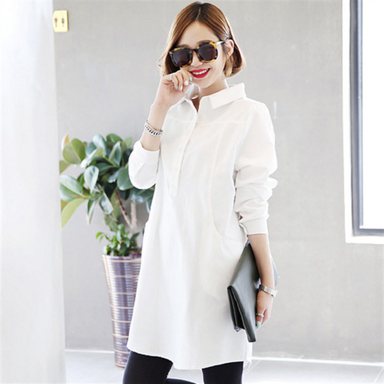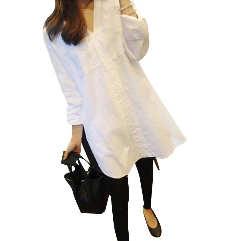 Длинная рубашка, осенний белый лонгслив, средней длины, 2023, большой размер, V-образный вырез