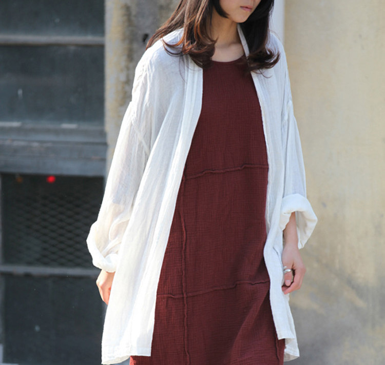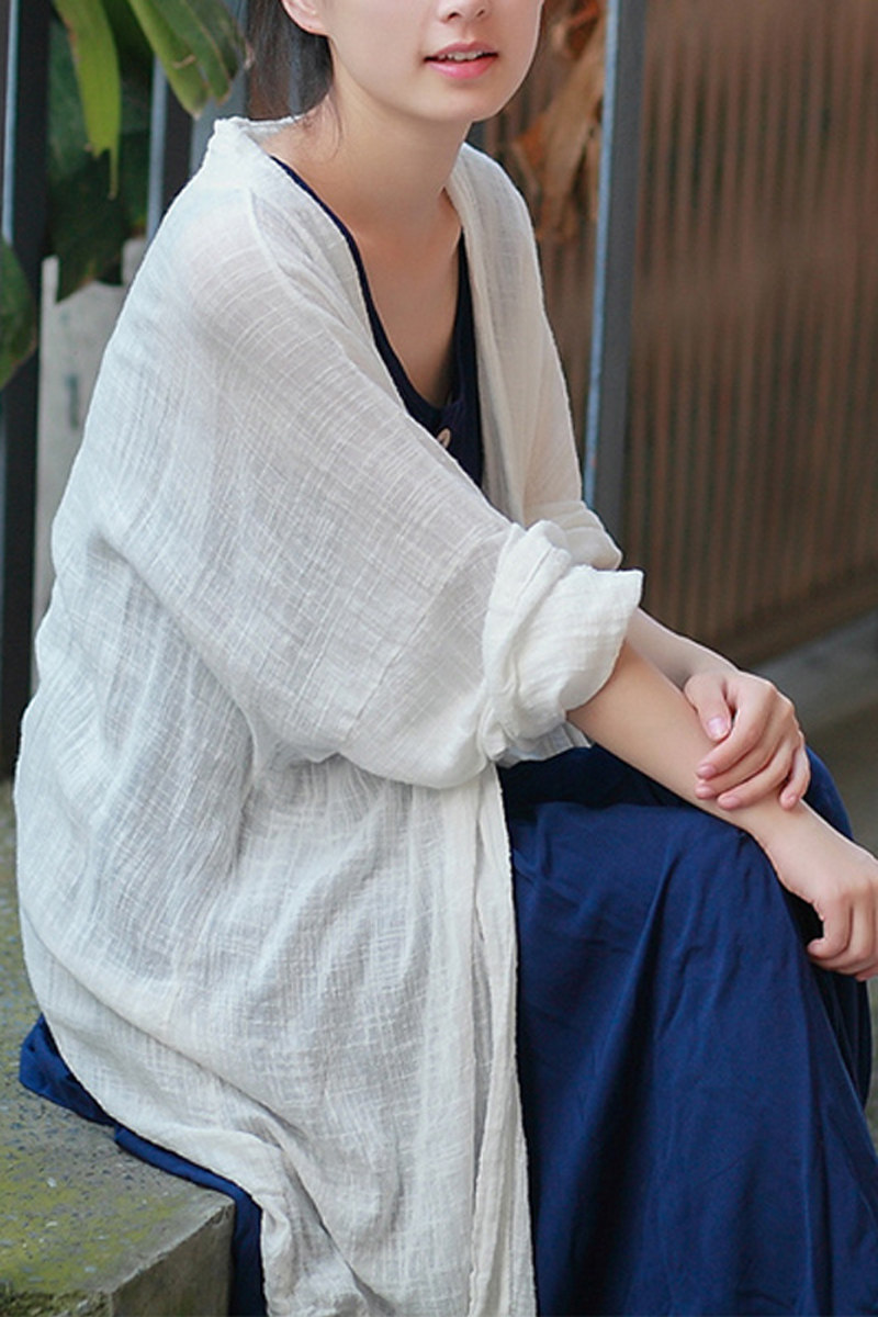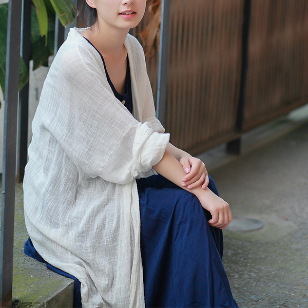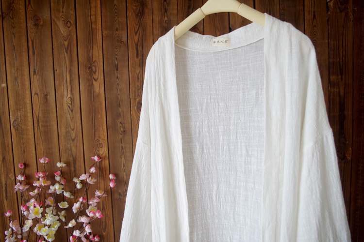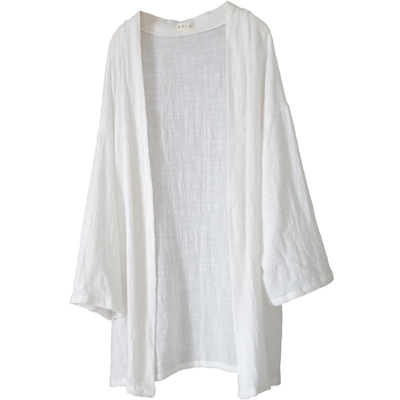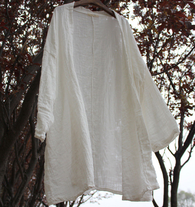 Длинный тонкий кардиган, куртка, из хлопка и льна, средней длины, свободный крой, защита от солнца