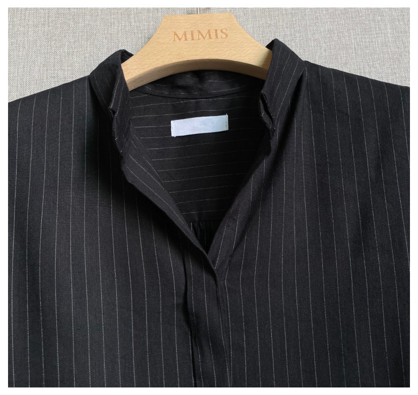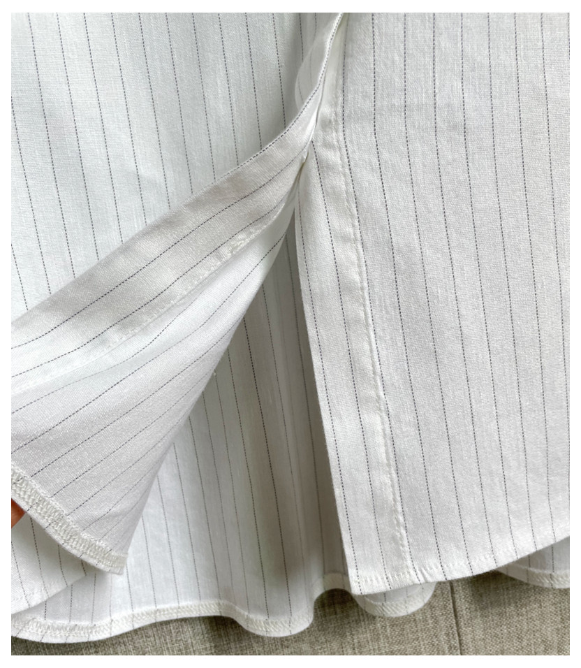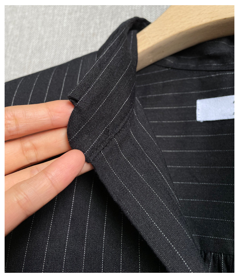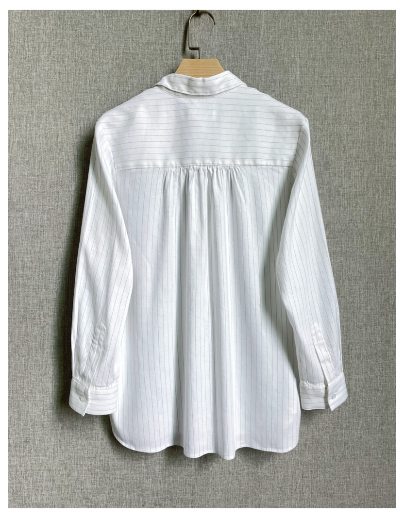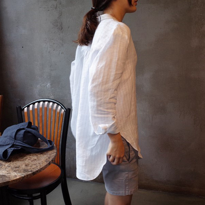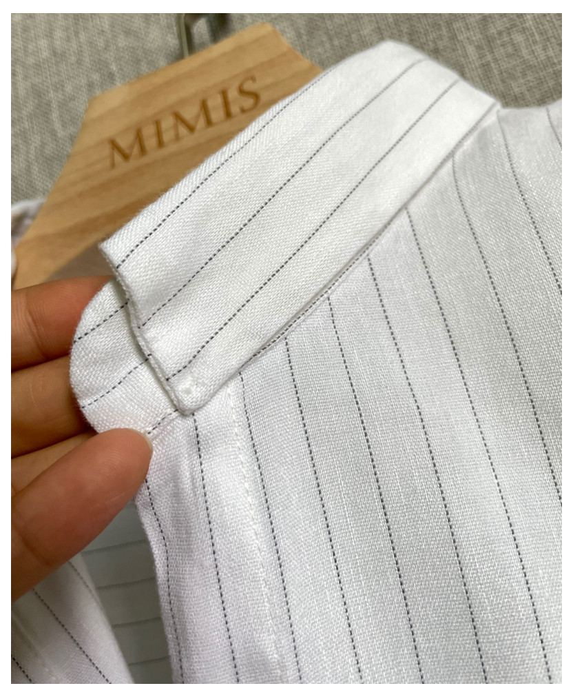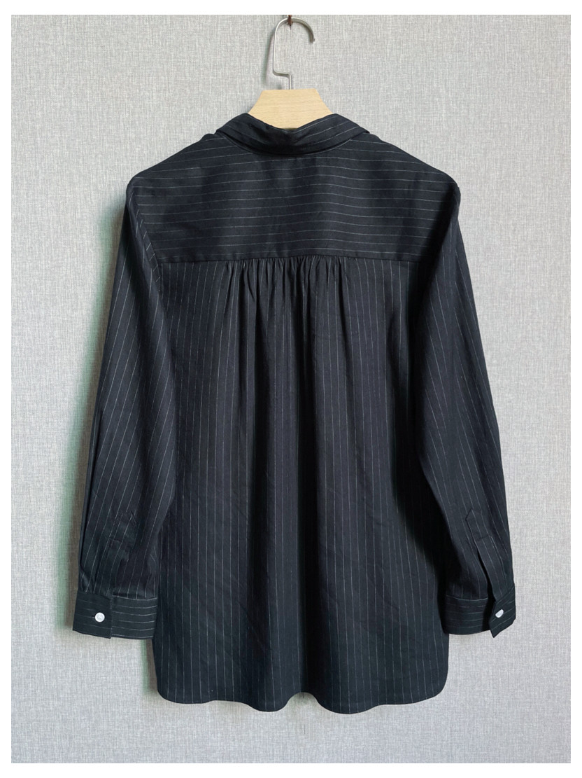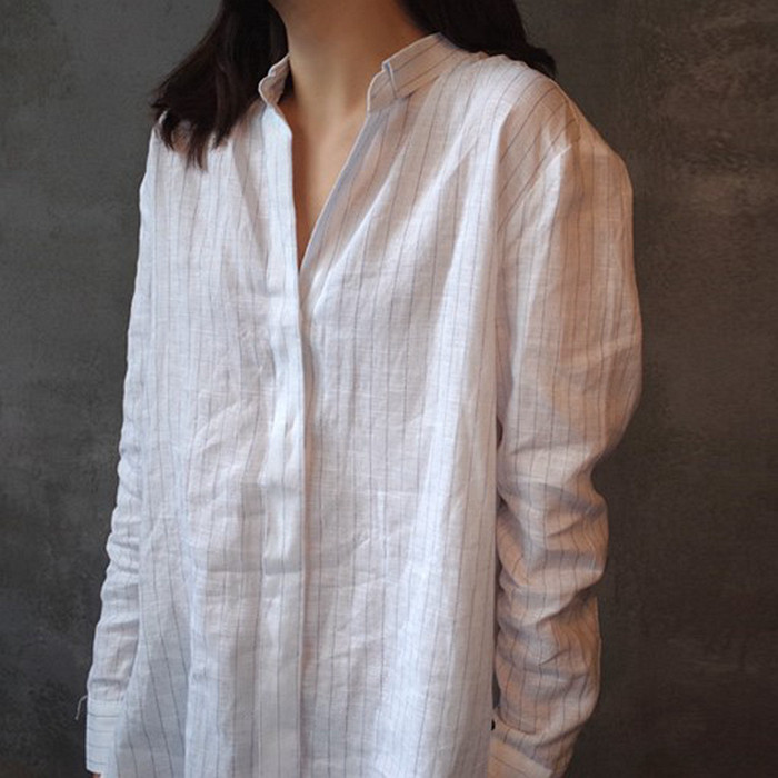 C09 Корейские женские женские новое издание 2024 Puritors Полосы простые льна свободными свободными весной с длинным рукавом и осенней женской рубашкой