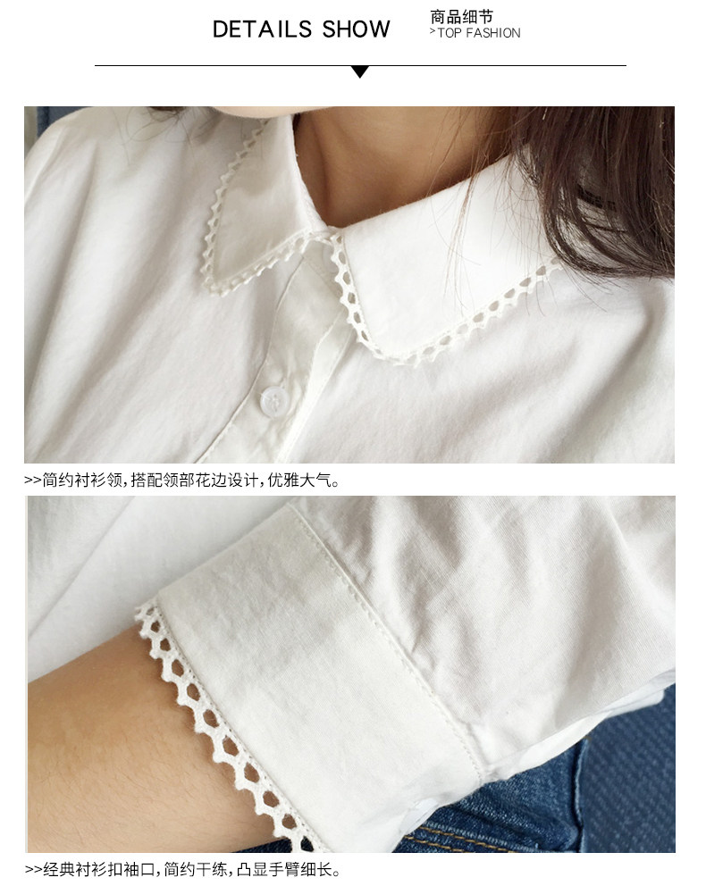 Осенний хлопковый лонгслив, кружевная рубашка для школьников и студентов, в корейском стиле, кружевное платье