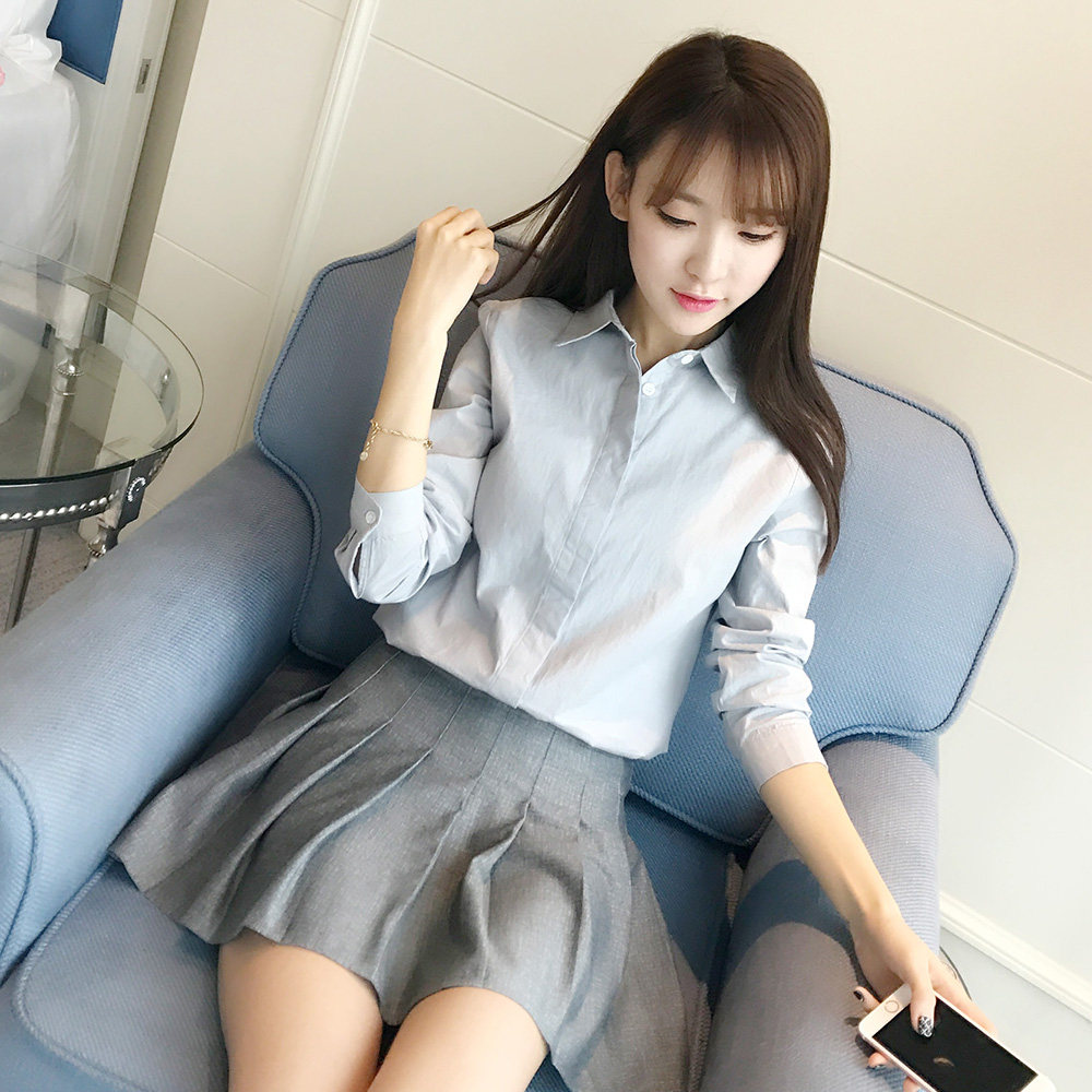 Весенняя базовая рубашка для школьников и студентов, 2018, в корейском стиле