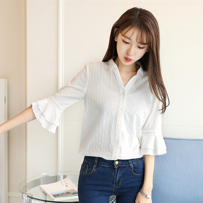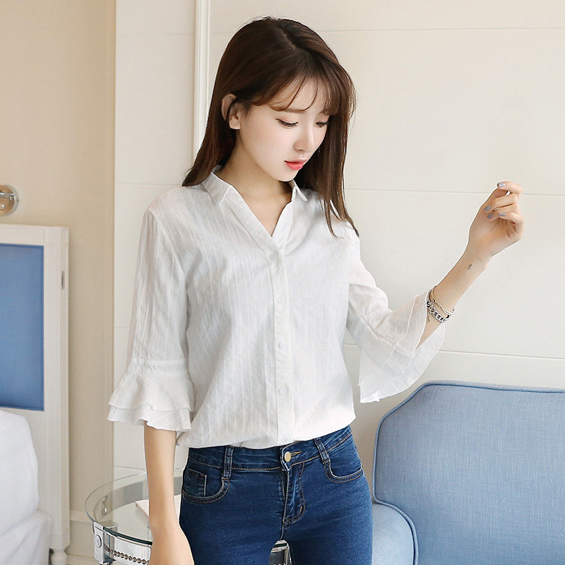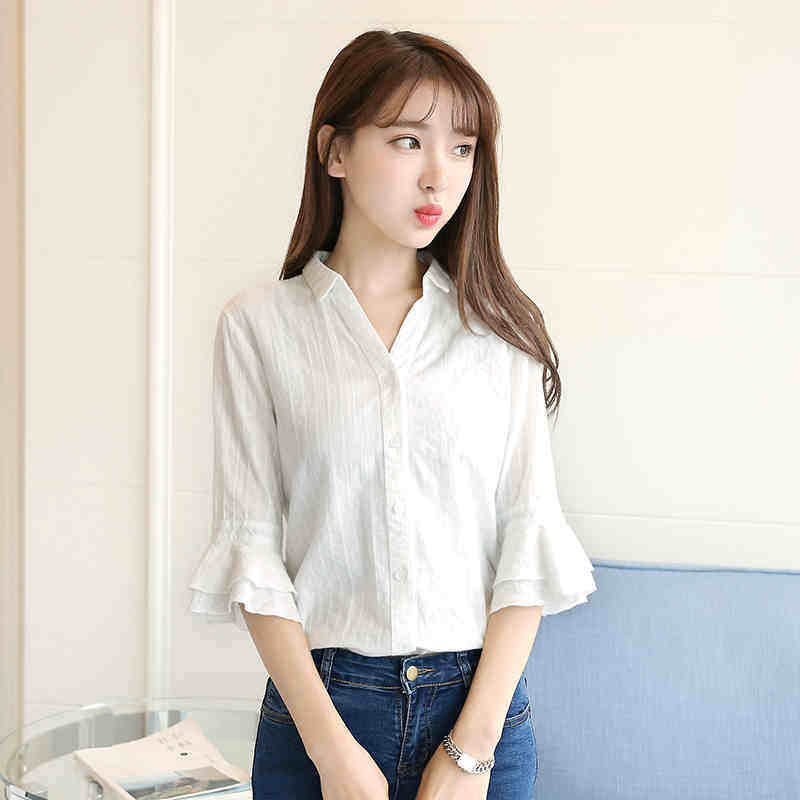 Летний мегафон, свежая рубашка, коллекция 2021, в корейском стиле, V-образный вырез