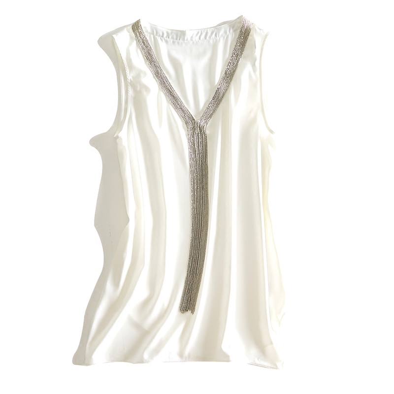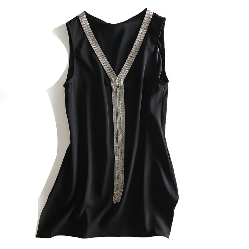Японская изысканная цепь, цветная рубашка без рукавов, V-образный вырез, А-силуэт, крой