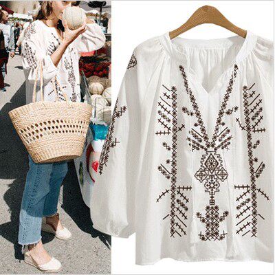 Летняя этническая футболка, европейский стиль, коллекция 2021, подходит для полных девушек, большой размер, этнический стиль, с вышивкой, свободный крой