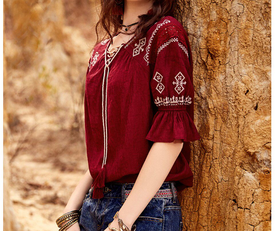 Летний мегафон, ремень с кисточками, ретро красная рубашка, 10385x