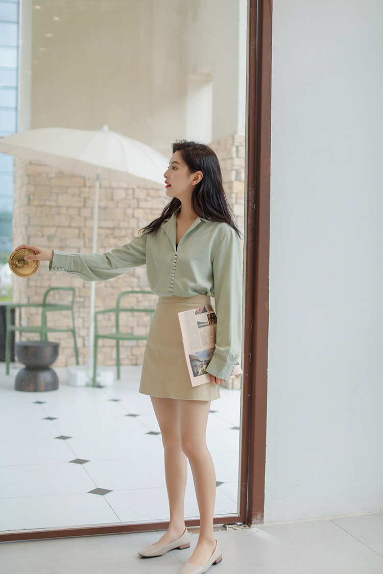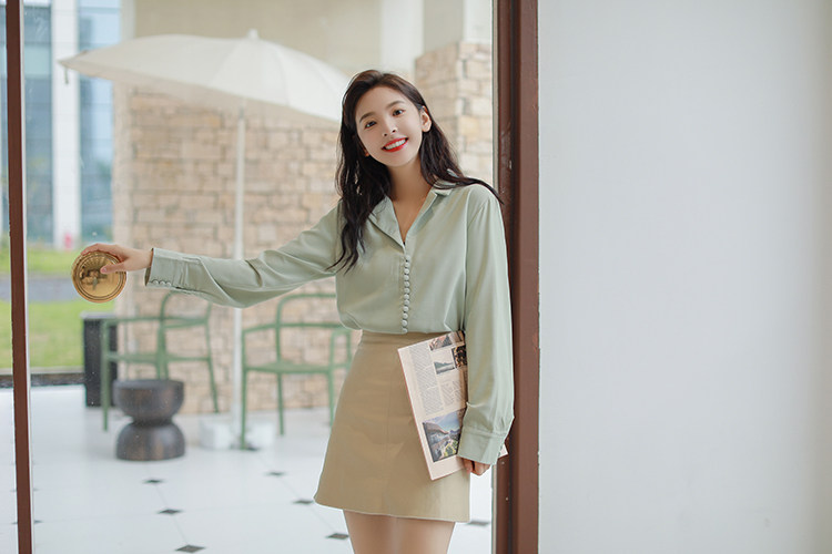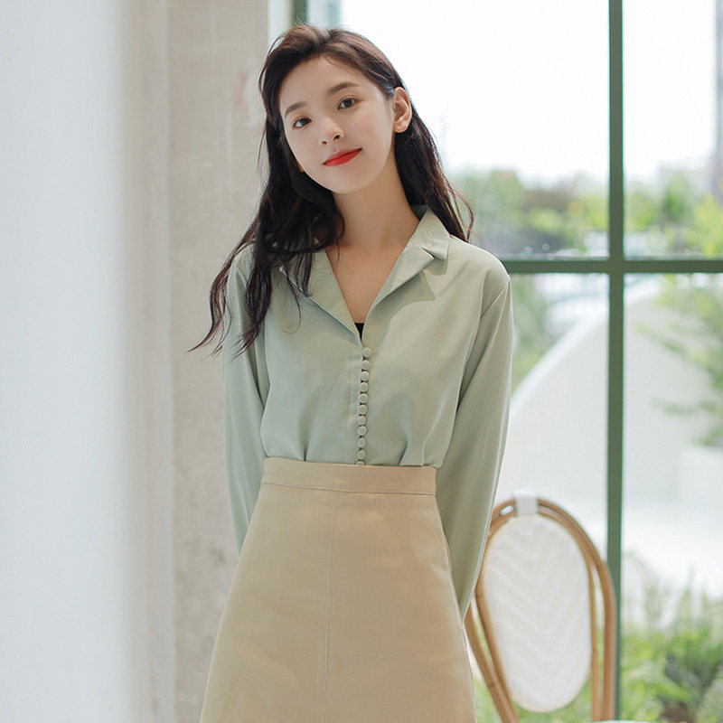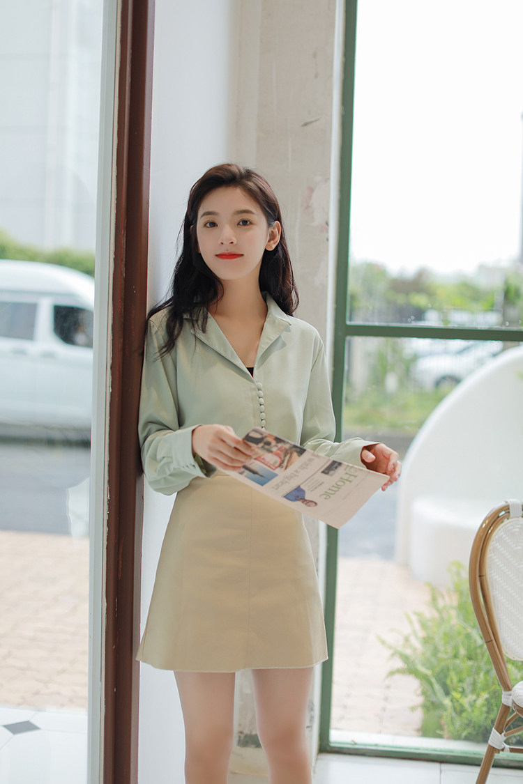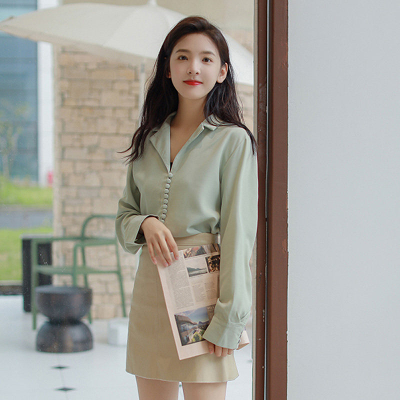 Ретро осенняя зеленая японская минималистичная рубашка, костюм, французский стиль