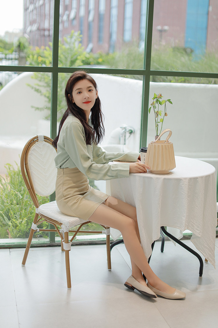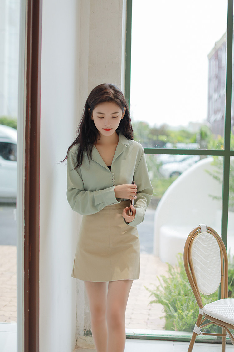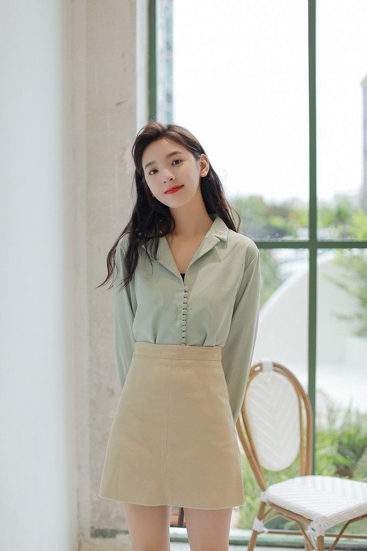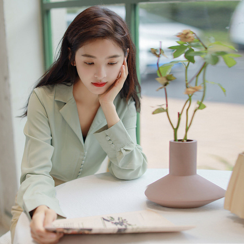 Ретро осенняя зеленая японская минималистичная рубашка, костюм, французский стиль