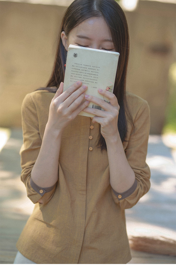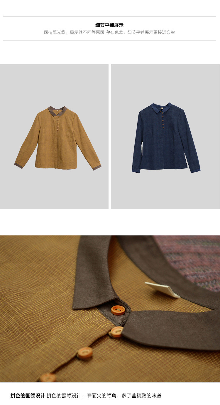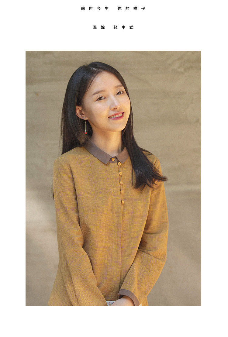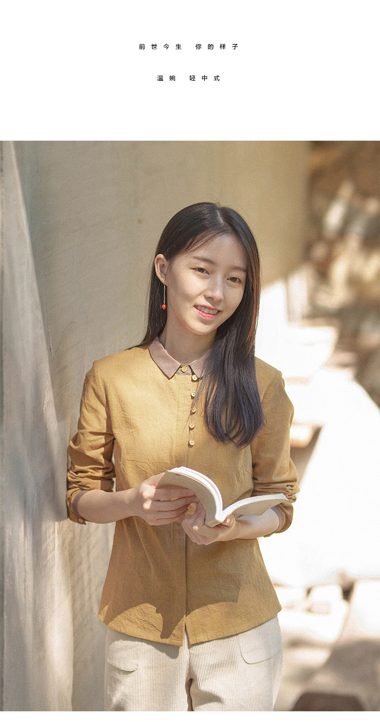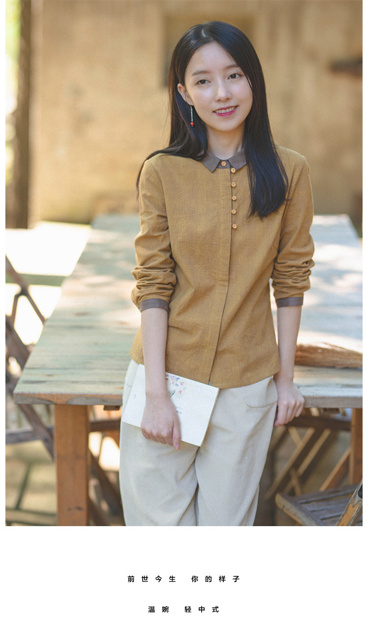 18QDA-107 [Jin Yan] Предыдущая жизнь и сегодняшняя ретро-литературная литературная лацканая лацканая и льняная рубашка для плетения с длинными рукавами
