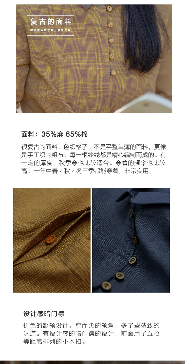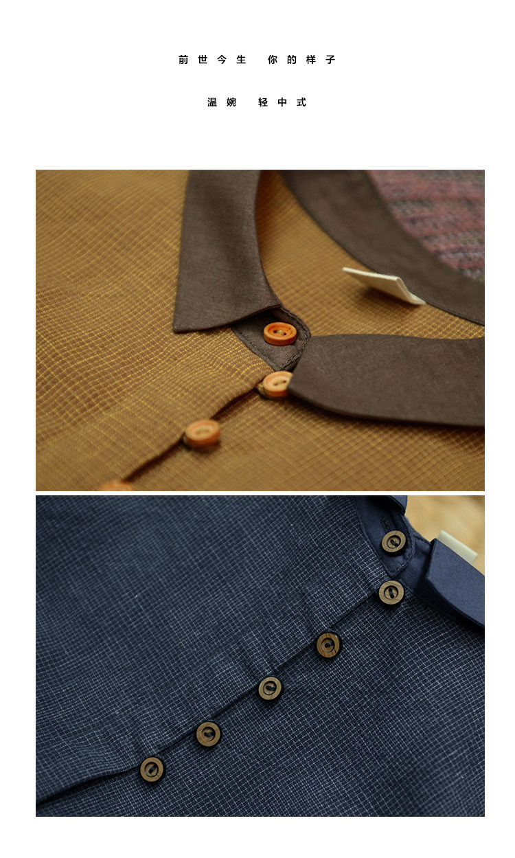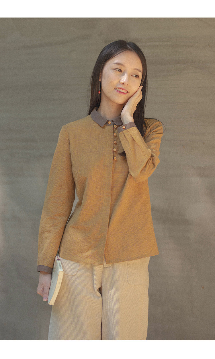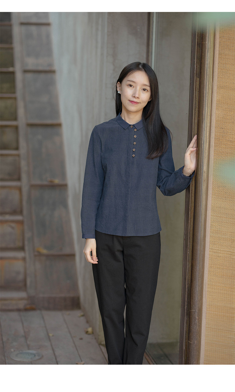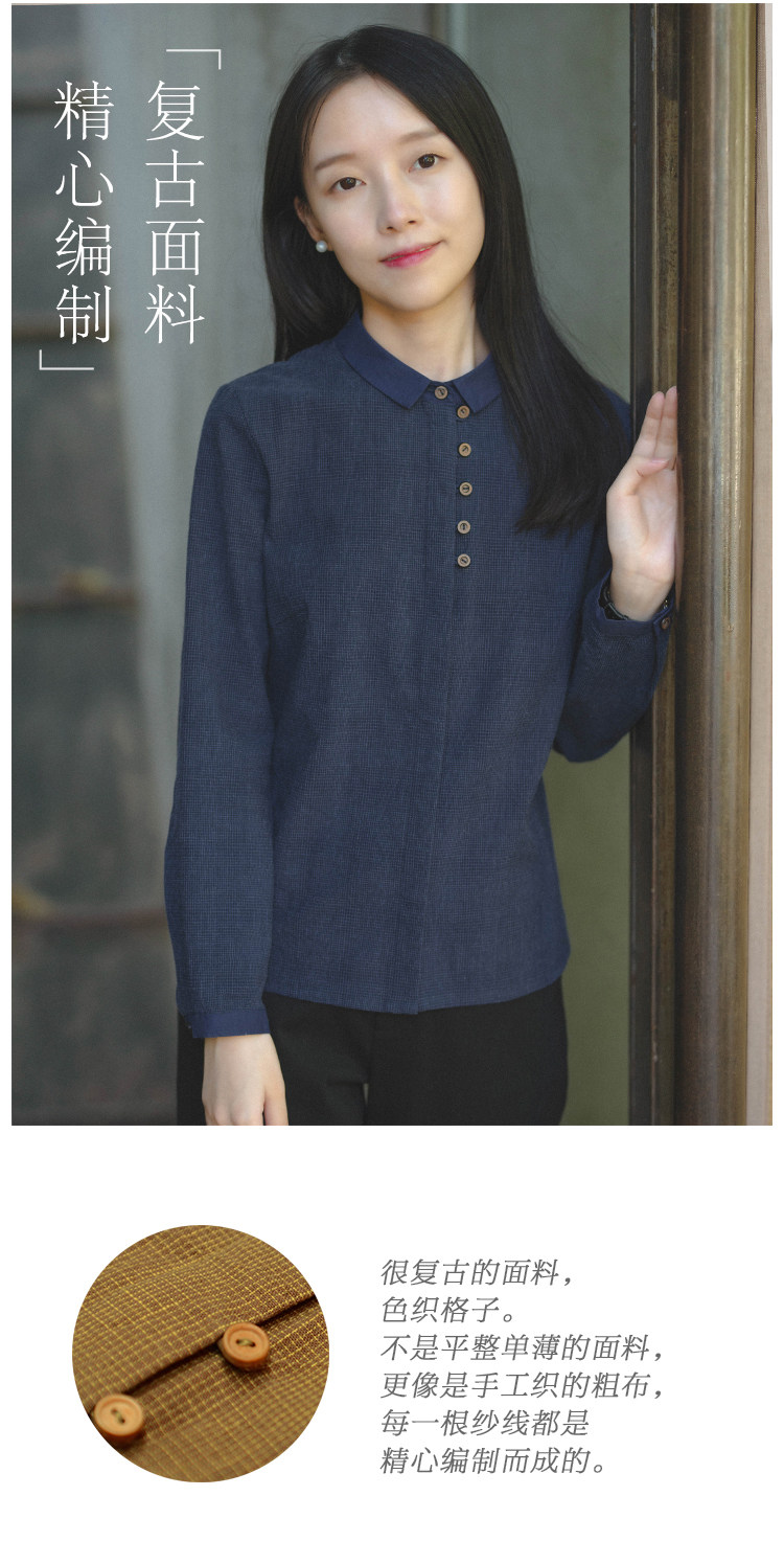18QDA-107 [Jin Yan] Предыдущая жизнь и сегодняшняя ретро-литературная литературная лацканая лацканая и льняная рубашка для плетения с длинными рукавами