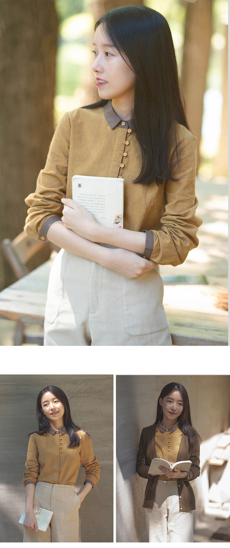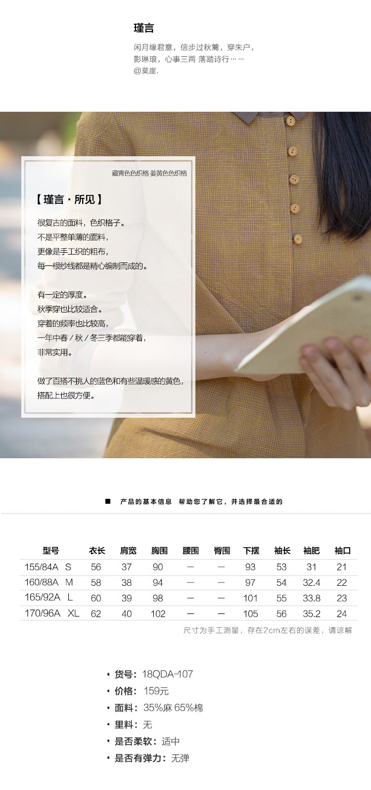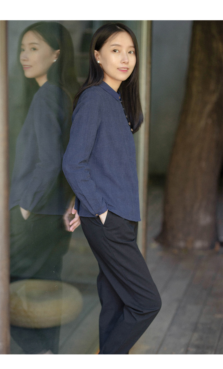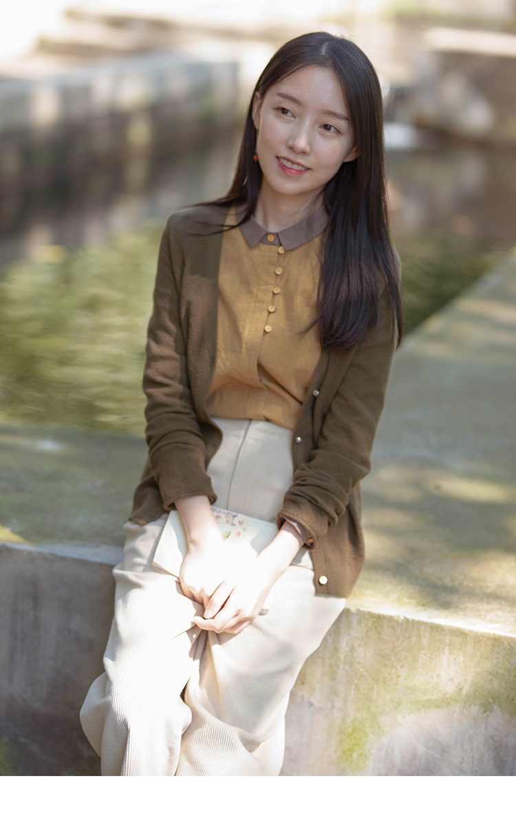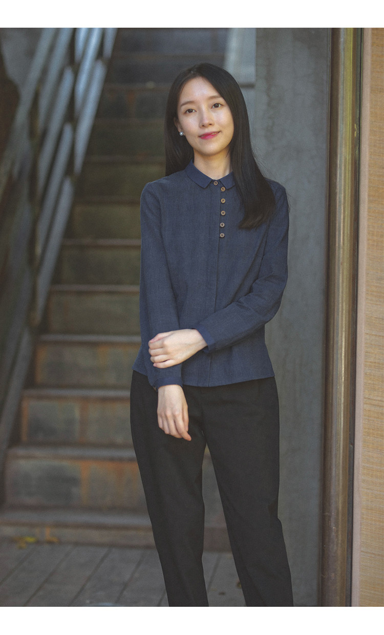 18QDA-107 [Jin Yan] Предыдущая жизнь и сегодняшняя ретро-литературная литературная лацканая лацканая и льняная рубашка для плетения с длинными рукавами