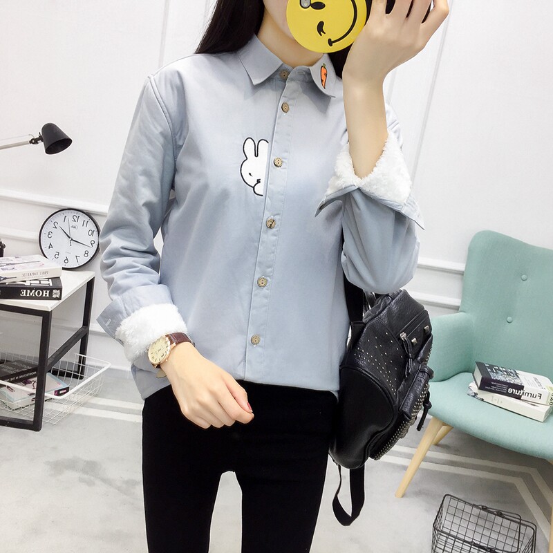 Флисовая рубашка, свежий утепленный зимний лонгслив для школьников и студентов, в корейском стиле, с вышивкой
