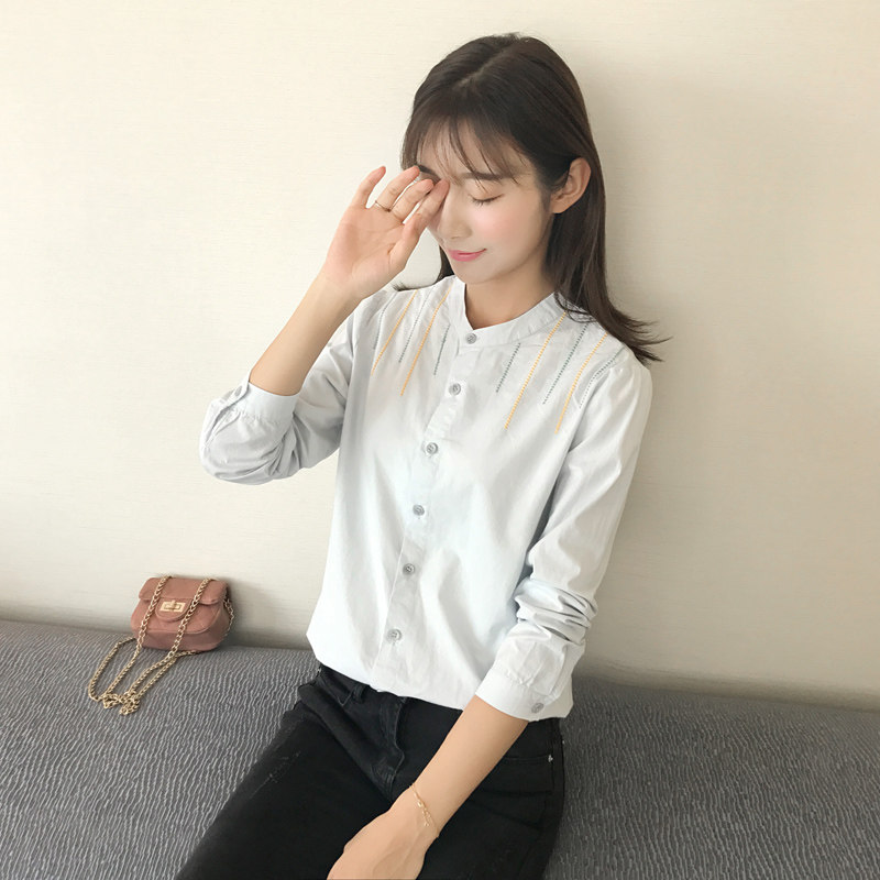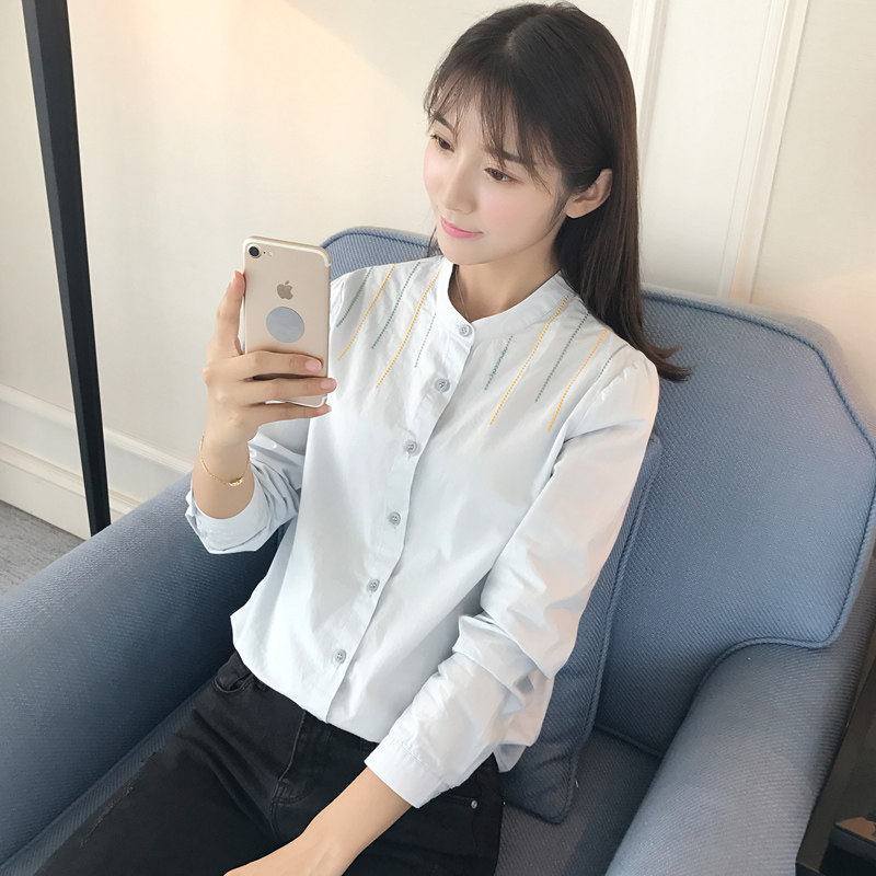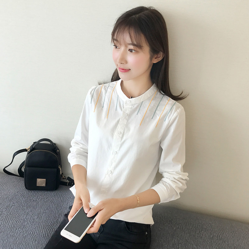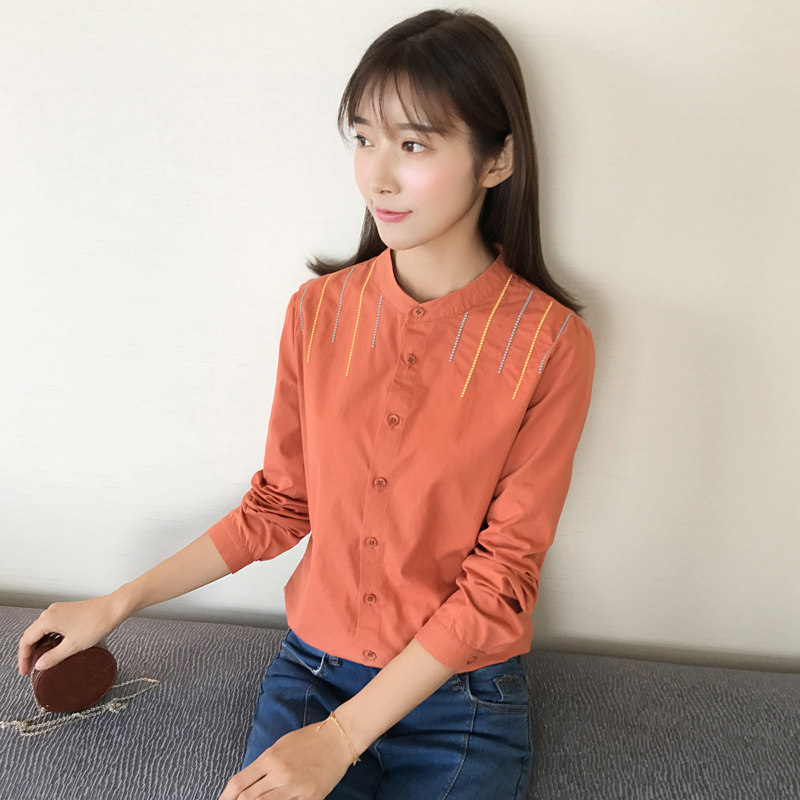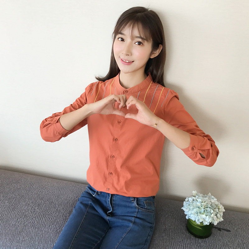 Осенняя хлопковая свежая рубашка, в корейском стиле, с вышивкой