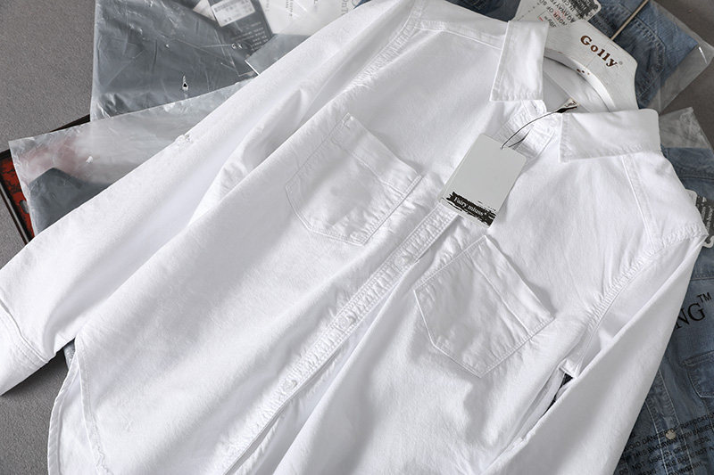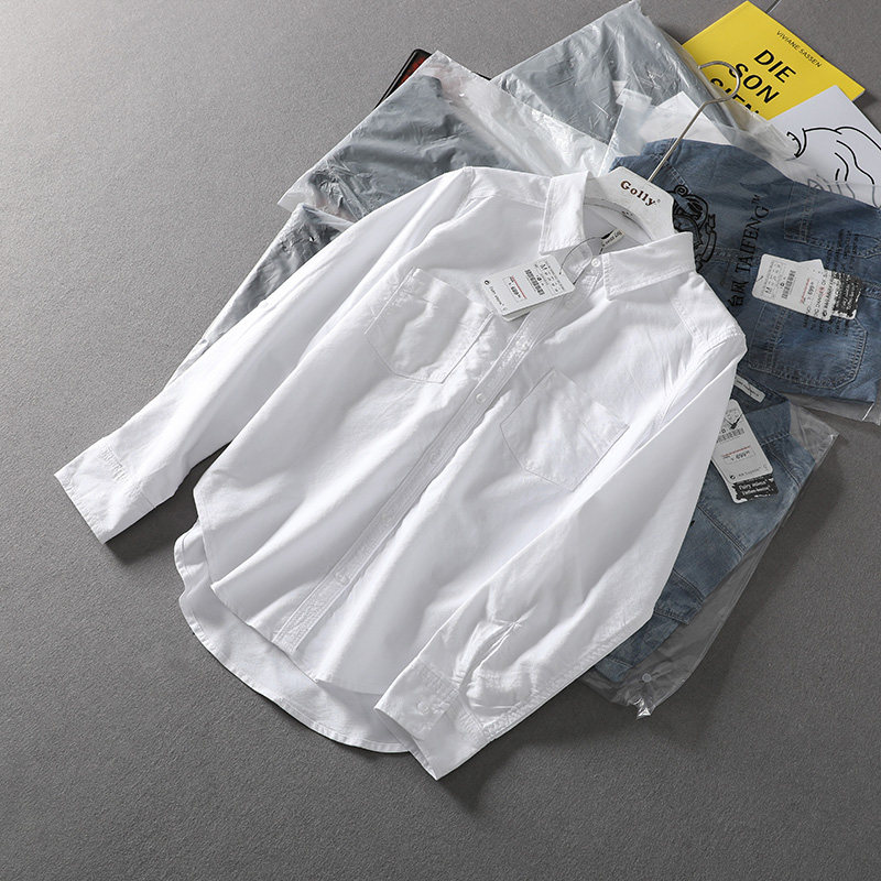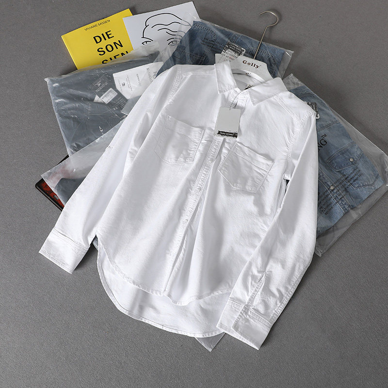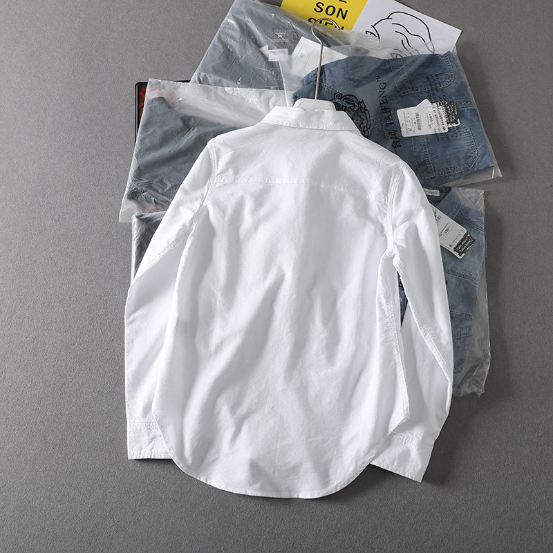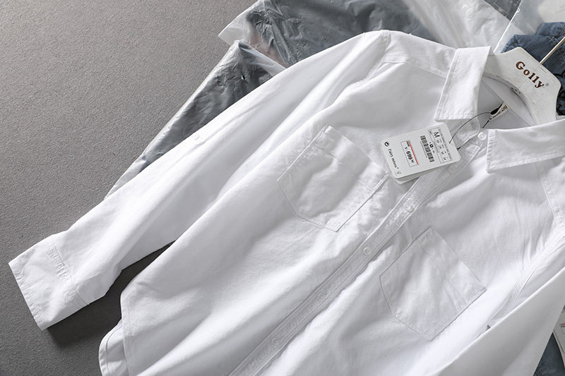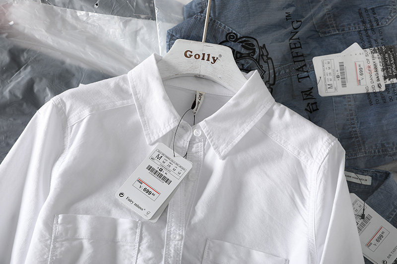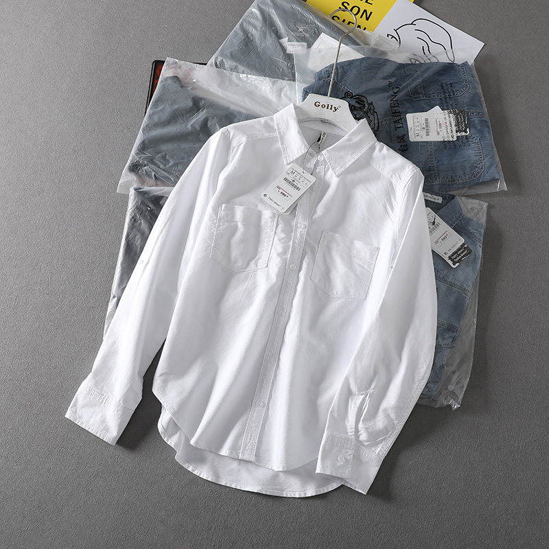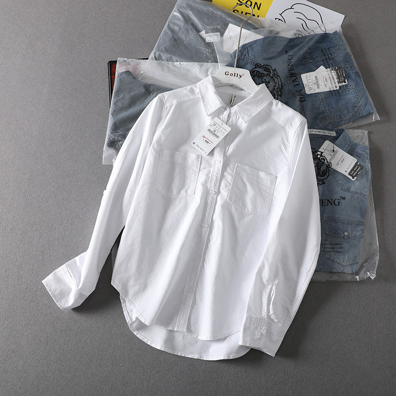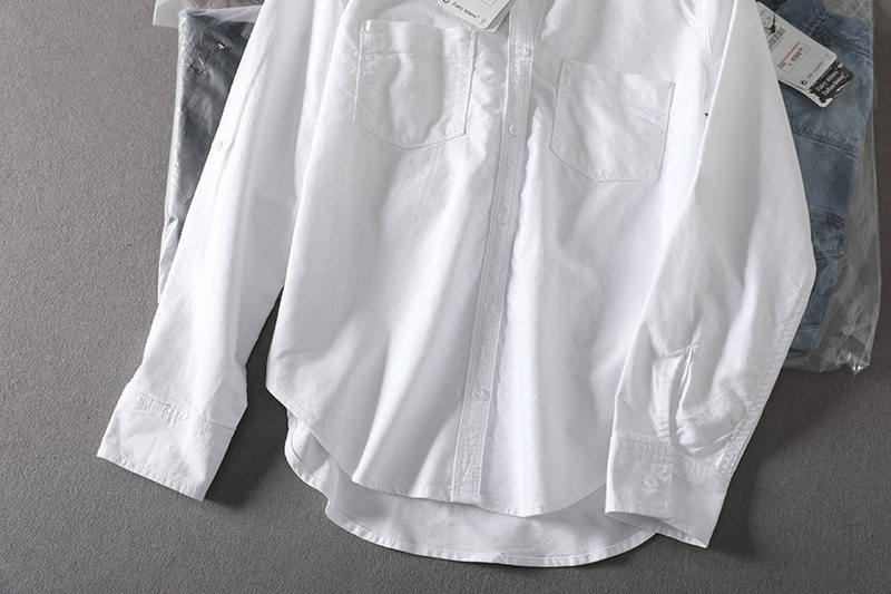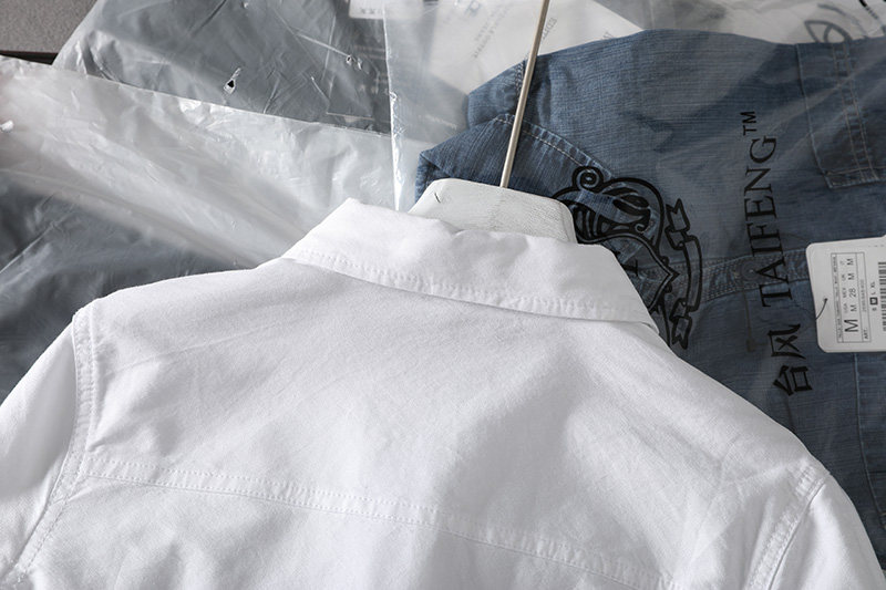(Трансграничная торговля), короткая хлопковая рубашка, облегающий крой, ткань оксфорд