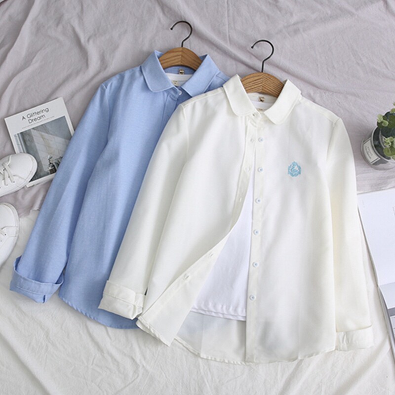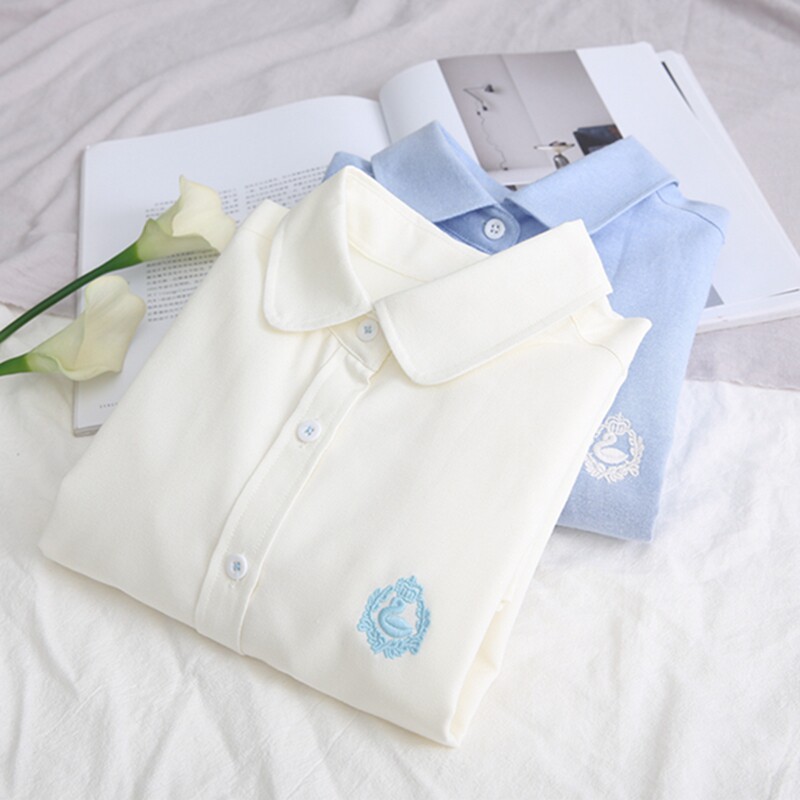 Весенняя японская свежая рубашка, лонгслив для школьников и студентов, кукла, 2019, тренд сезона, с вышивкой, кукольный воротник