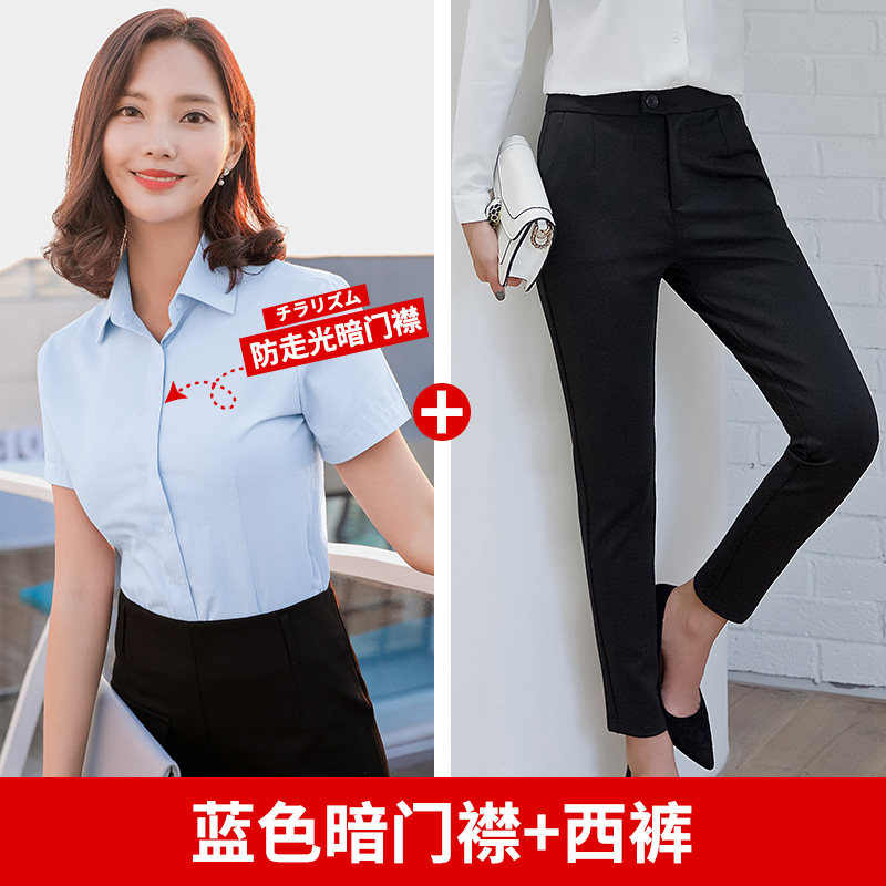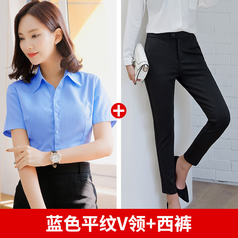 Летняя рубашка, комбинезон, пиджак классического кроя, синий лонгслив, короткий рукав, в корейском стиле, свободный крой