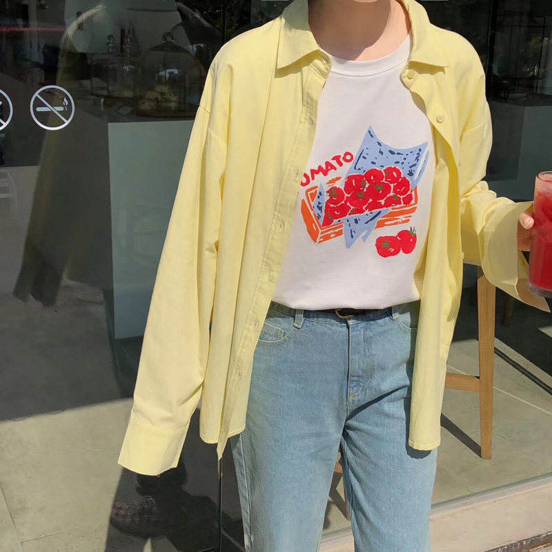 Свежая рубашка, однотонный кремовый желтый кардиган, оверсайз