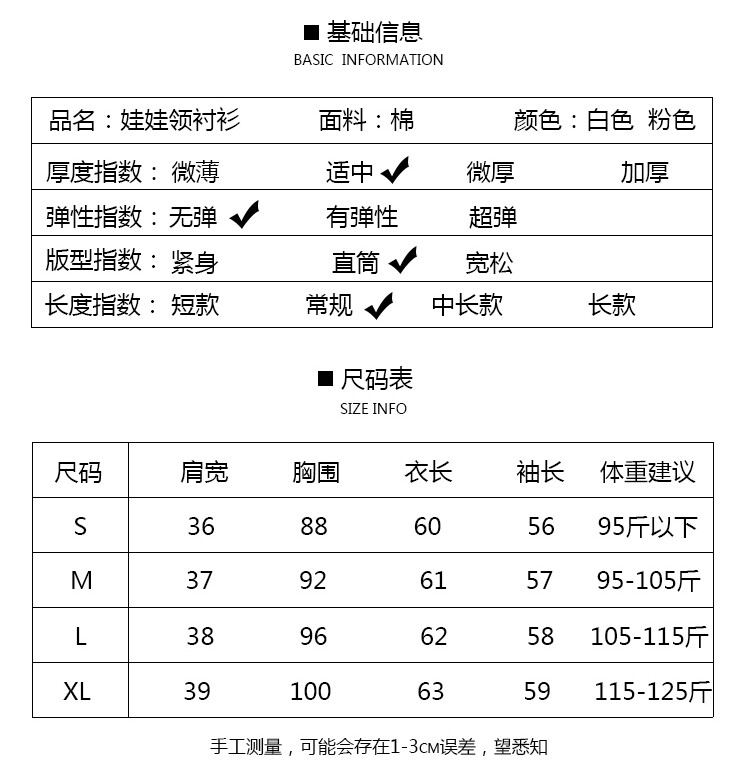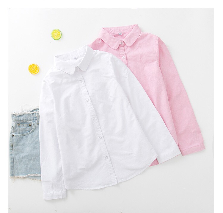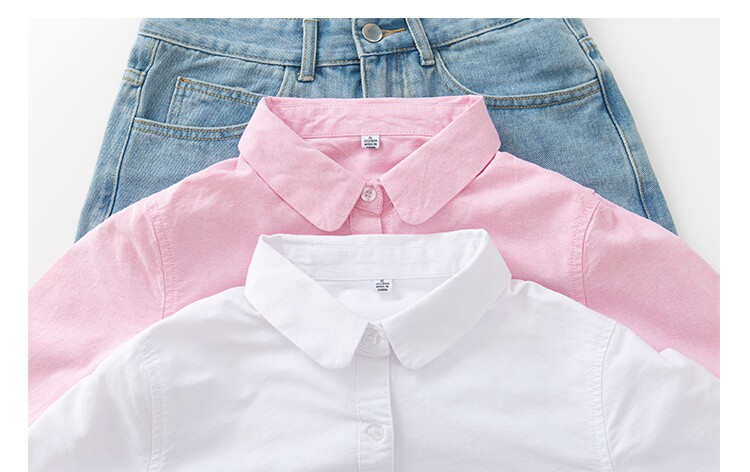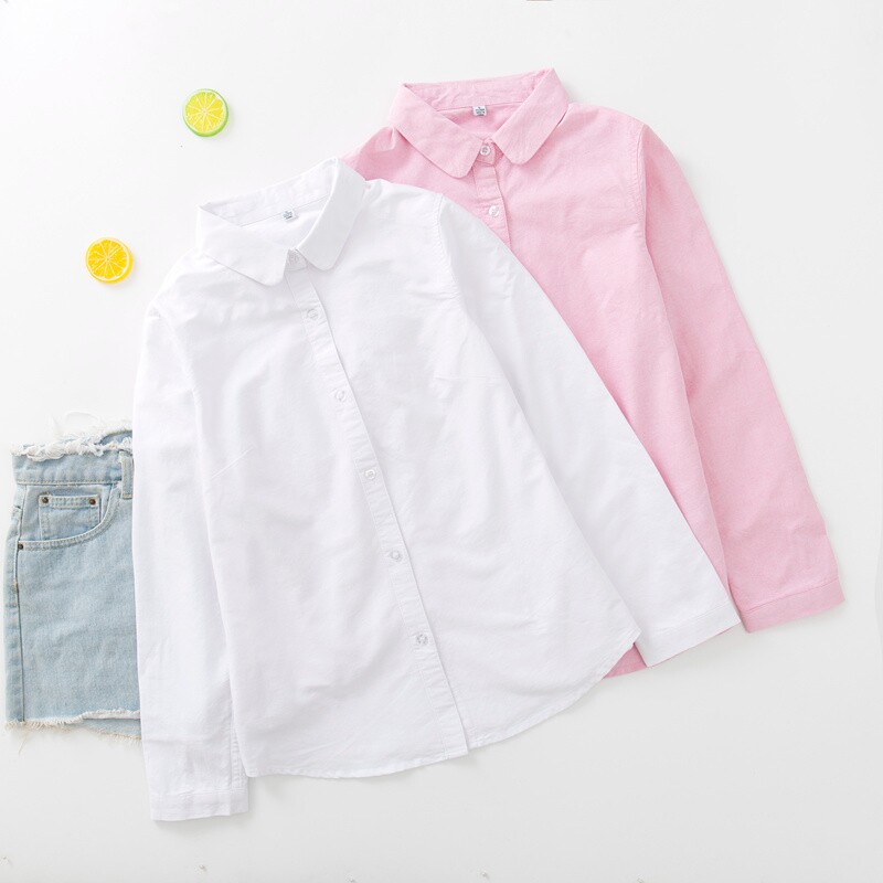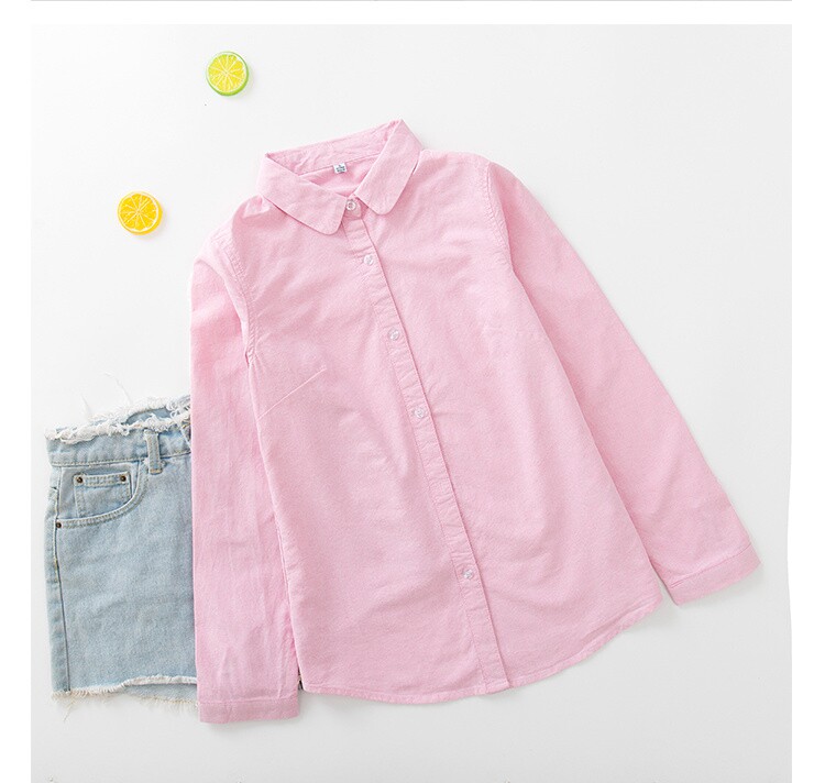 Осенняя свежая кукла, хлопковая рубашка, розовый базовый приятный телу лонгслив, новая коллекция, кукольный воротник