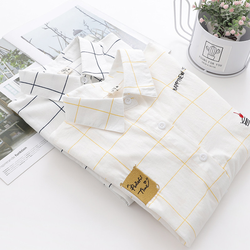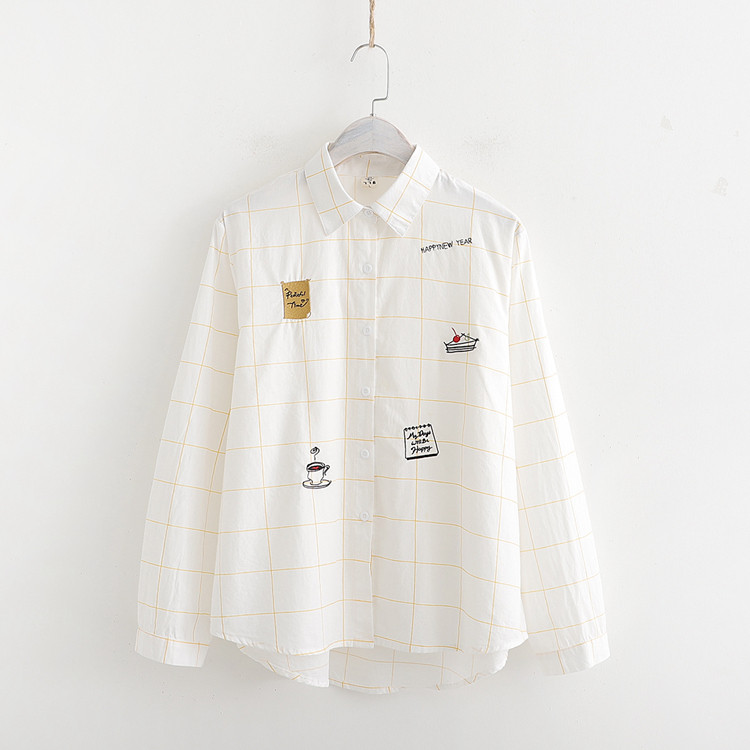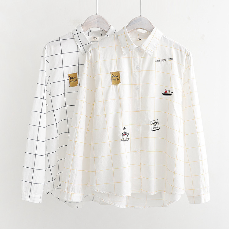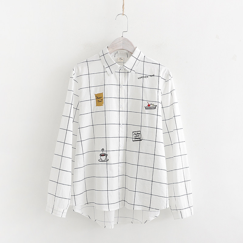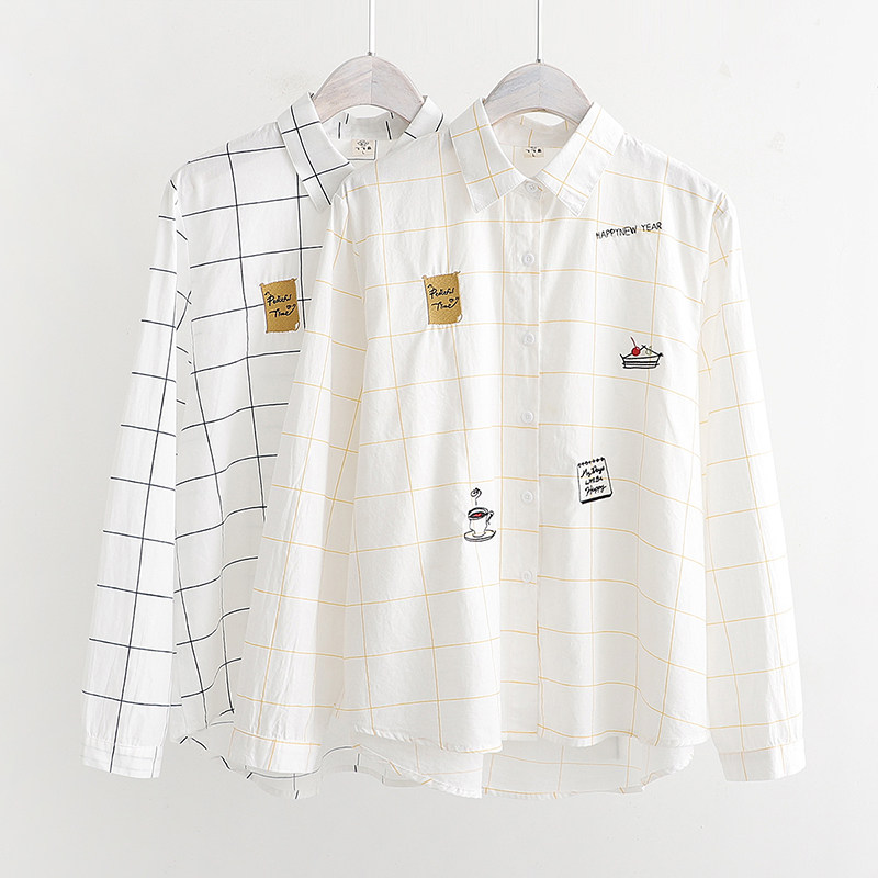 Осенняя свежая хлопковая рубашка для школьников и студентов, лонгслив, 2019, с вышивкой