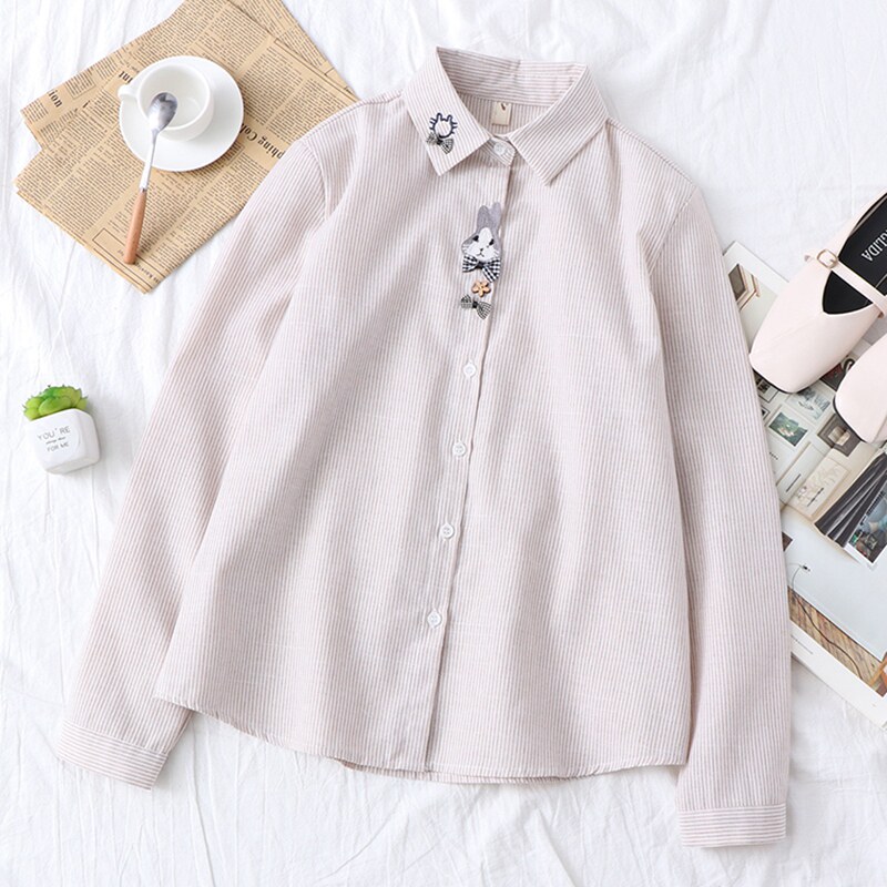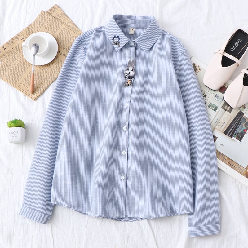 Весенняя милая свежая рубашка для школьников и студентов, 2020, с вышивкой, свободный крой