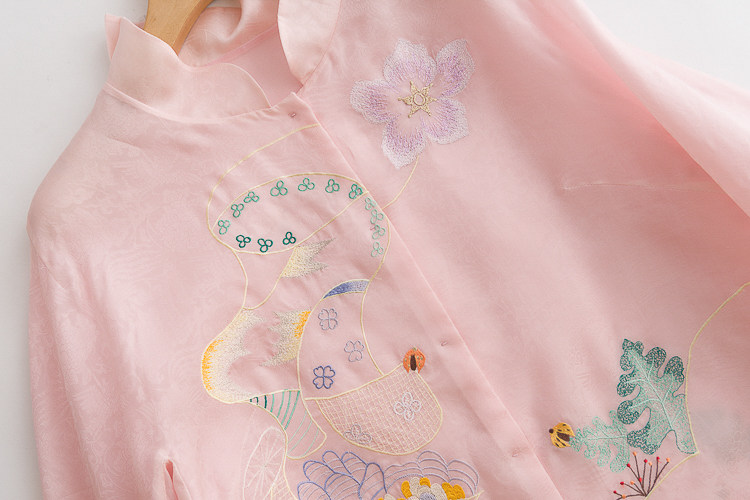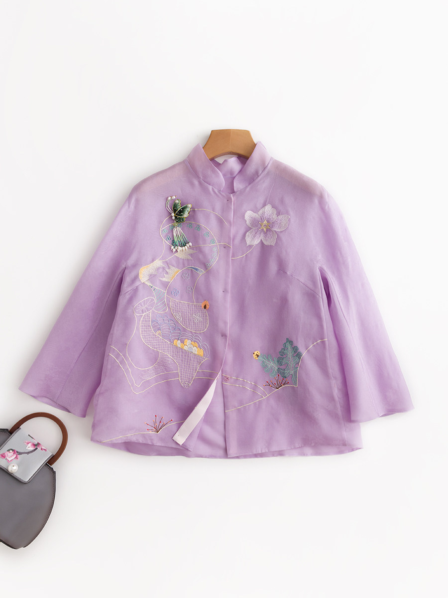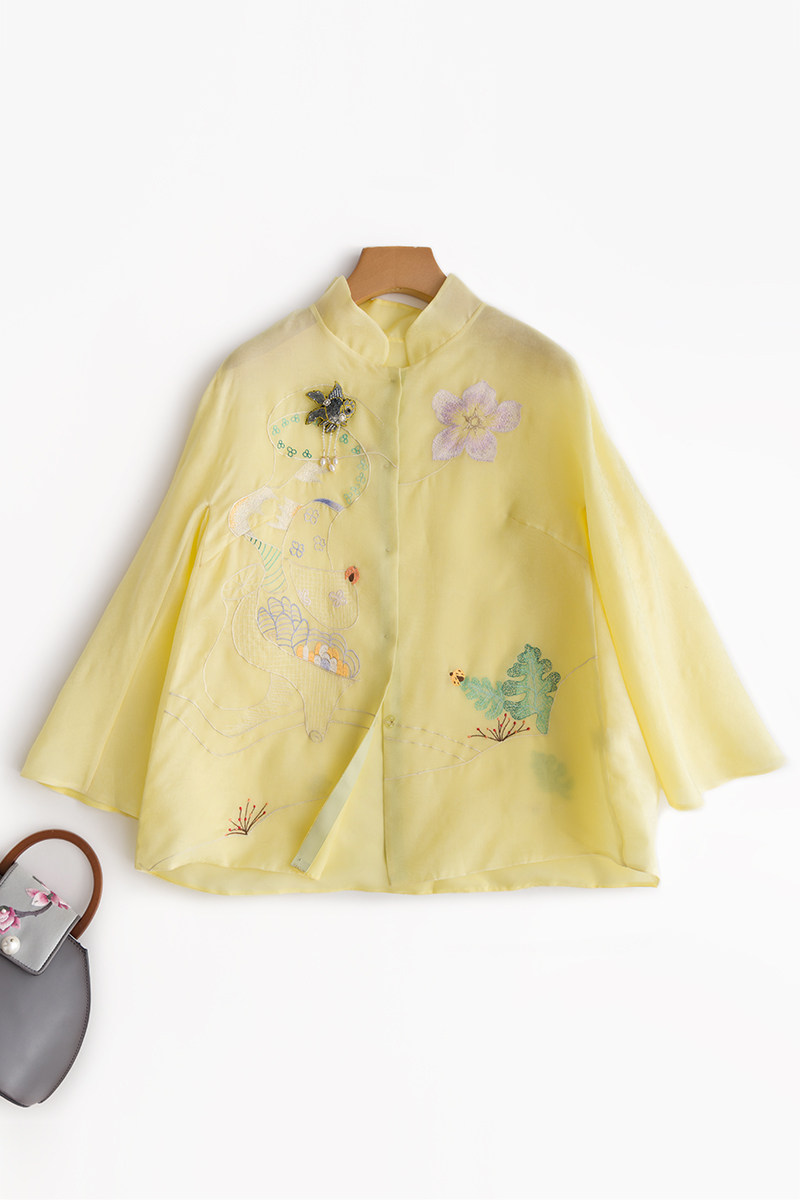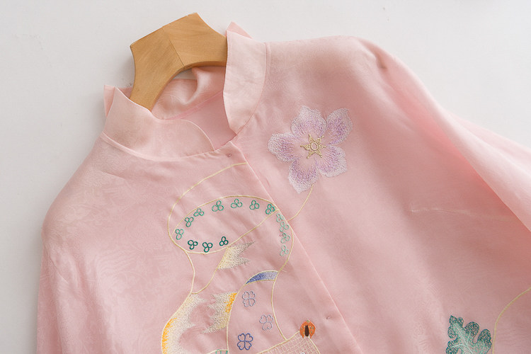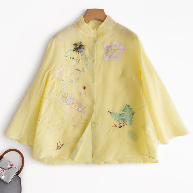 Летняя шелковая ретро вышивка, куртка, универсальная рубашка, с вышивкой
