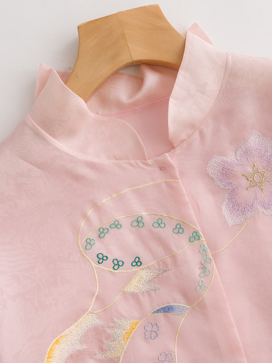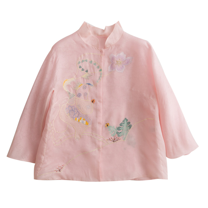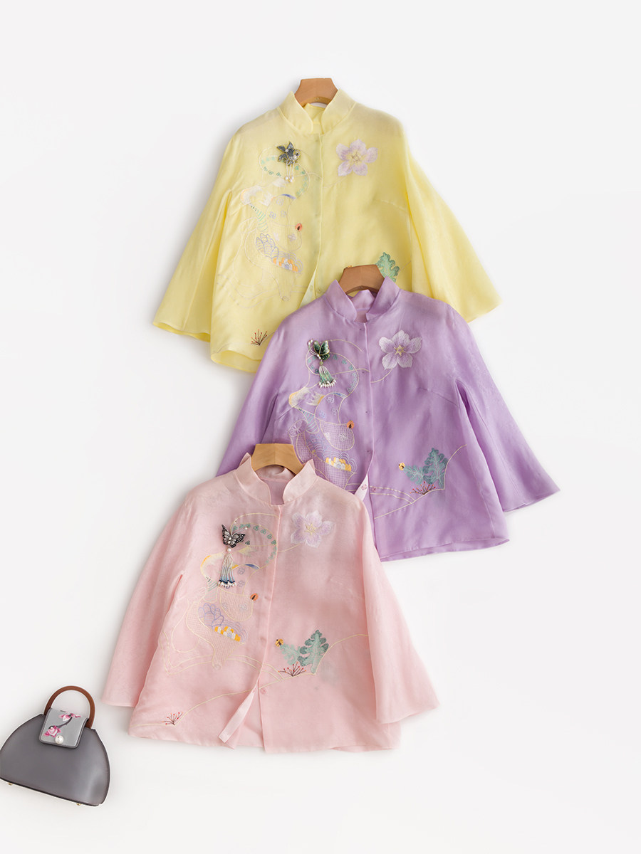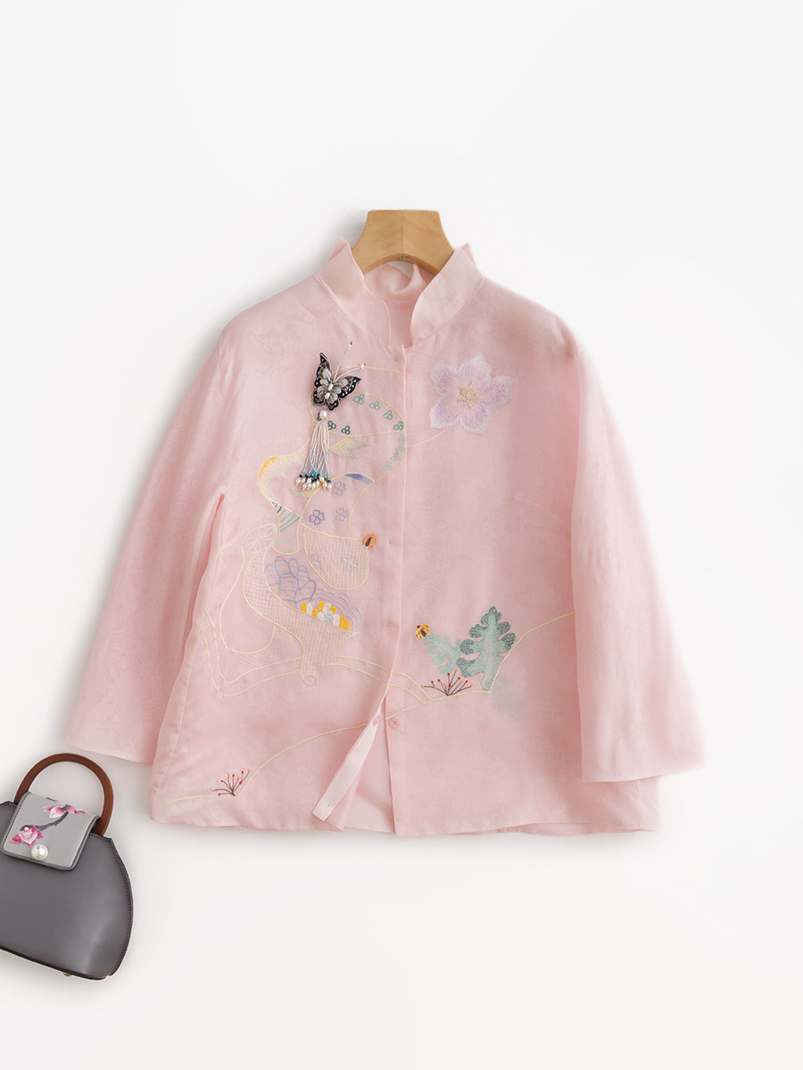Летняя шелковая ретро вышивка, куртка, универсальная рубашка, с вышивкой