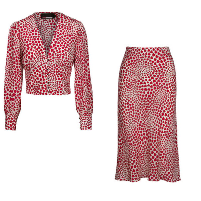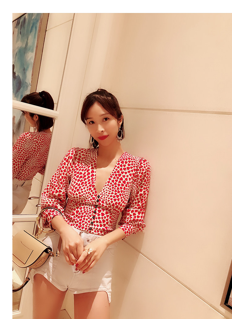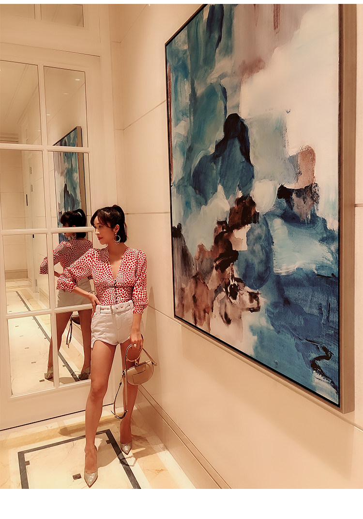 Весенний универсальный шелковый фонарь, короткая рубашка, юбка, тренд сезона, V-образный вырез