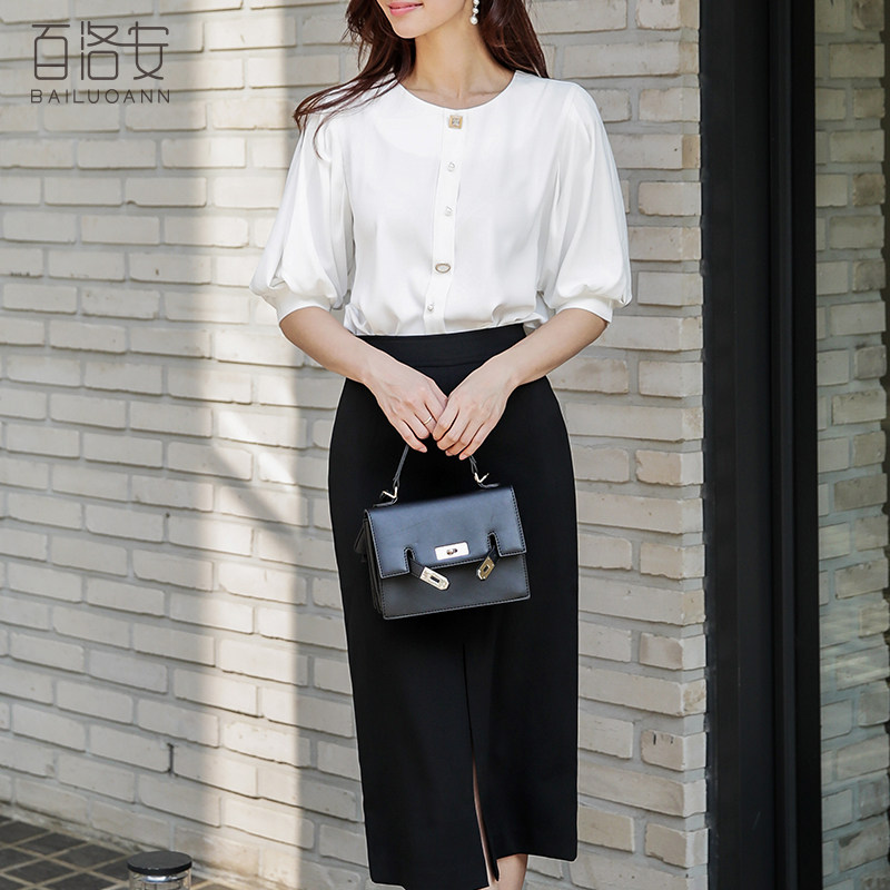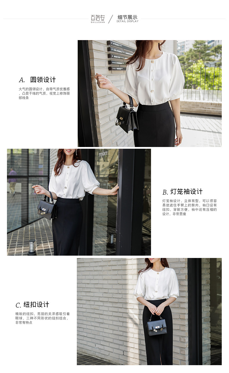 百洛安 Летний фонарь, универсальная рубашка с круглым воротником, в корейском стиле, в западном стиле