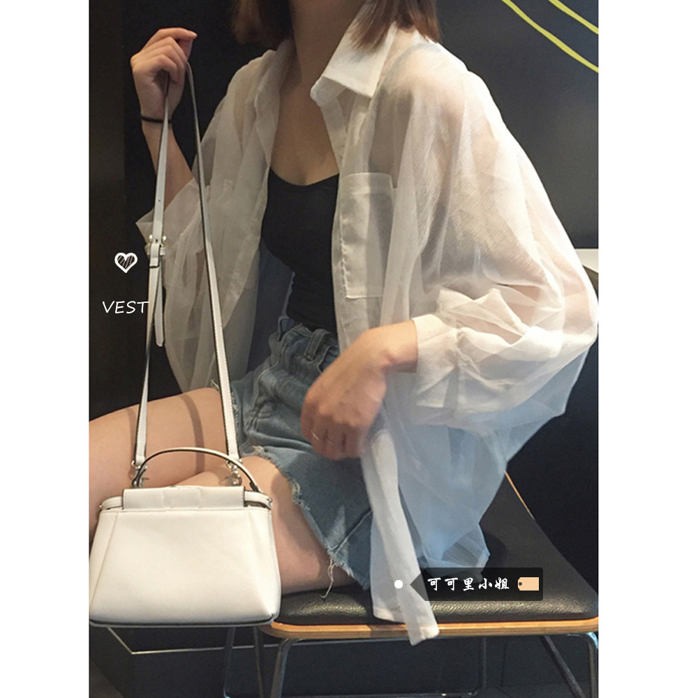 Белая шифоновая весенняя тонкая рубашка, лонгслив, куртка, защита от солнца, в корейском стиле