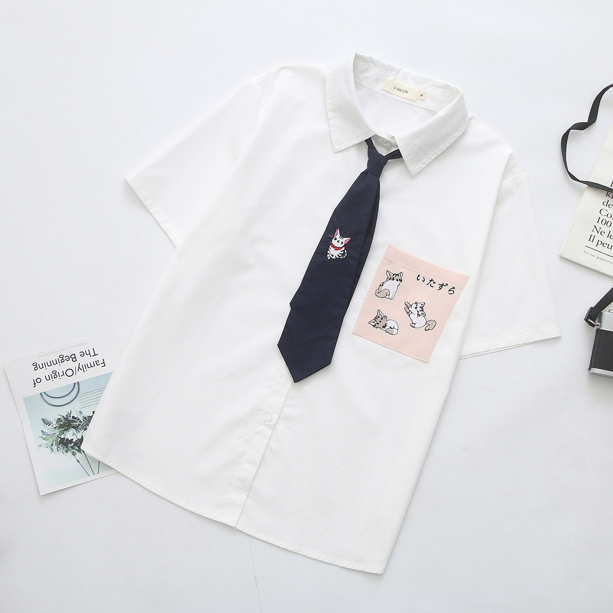 Японская милая летняя одежда, галстук, универсальная рубашка для школьников и студентов