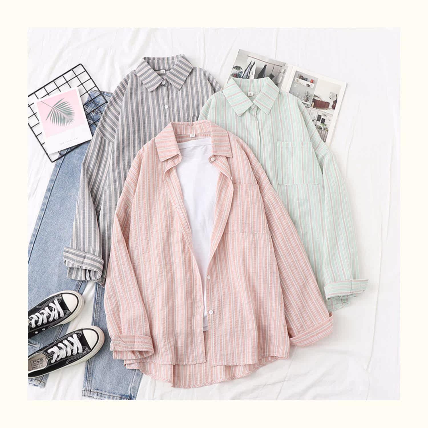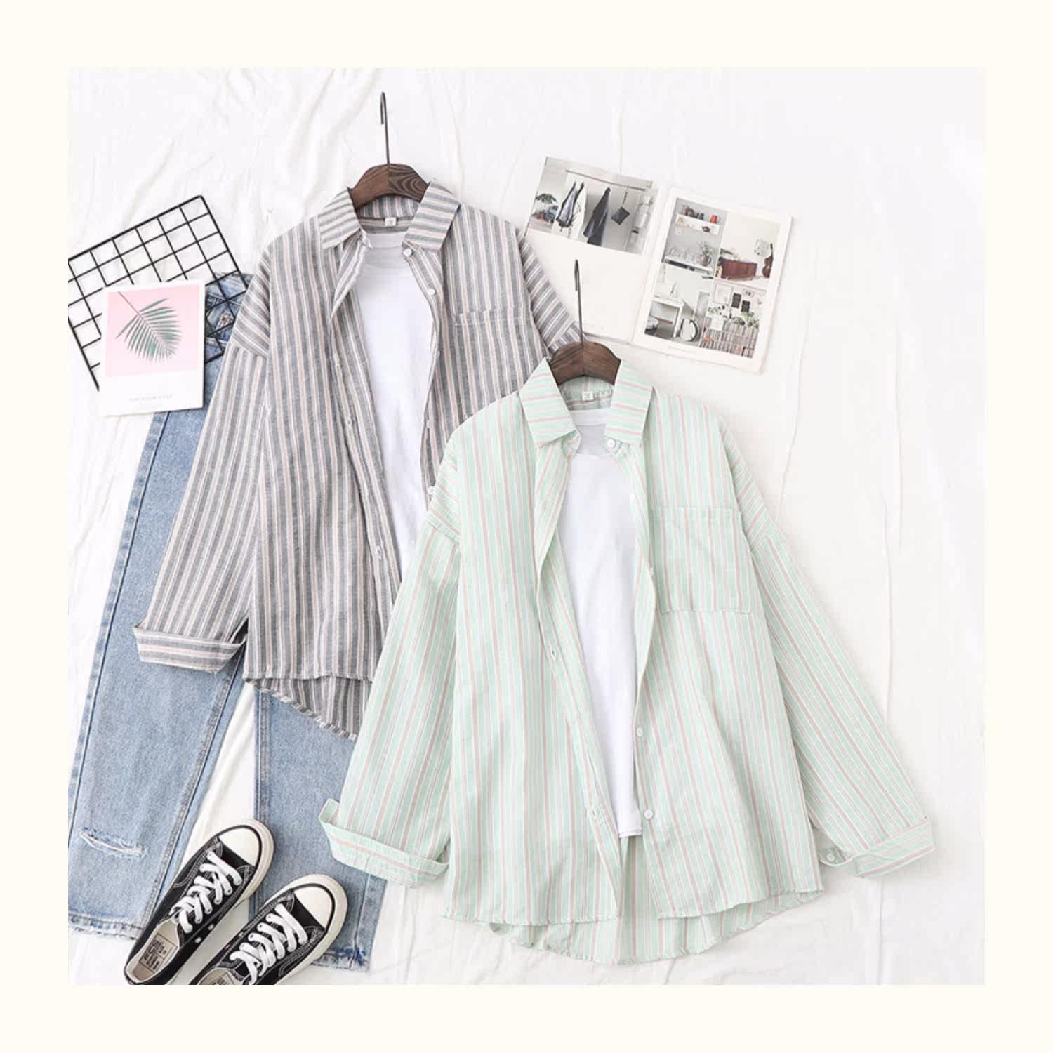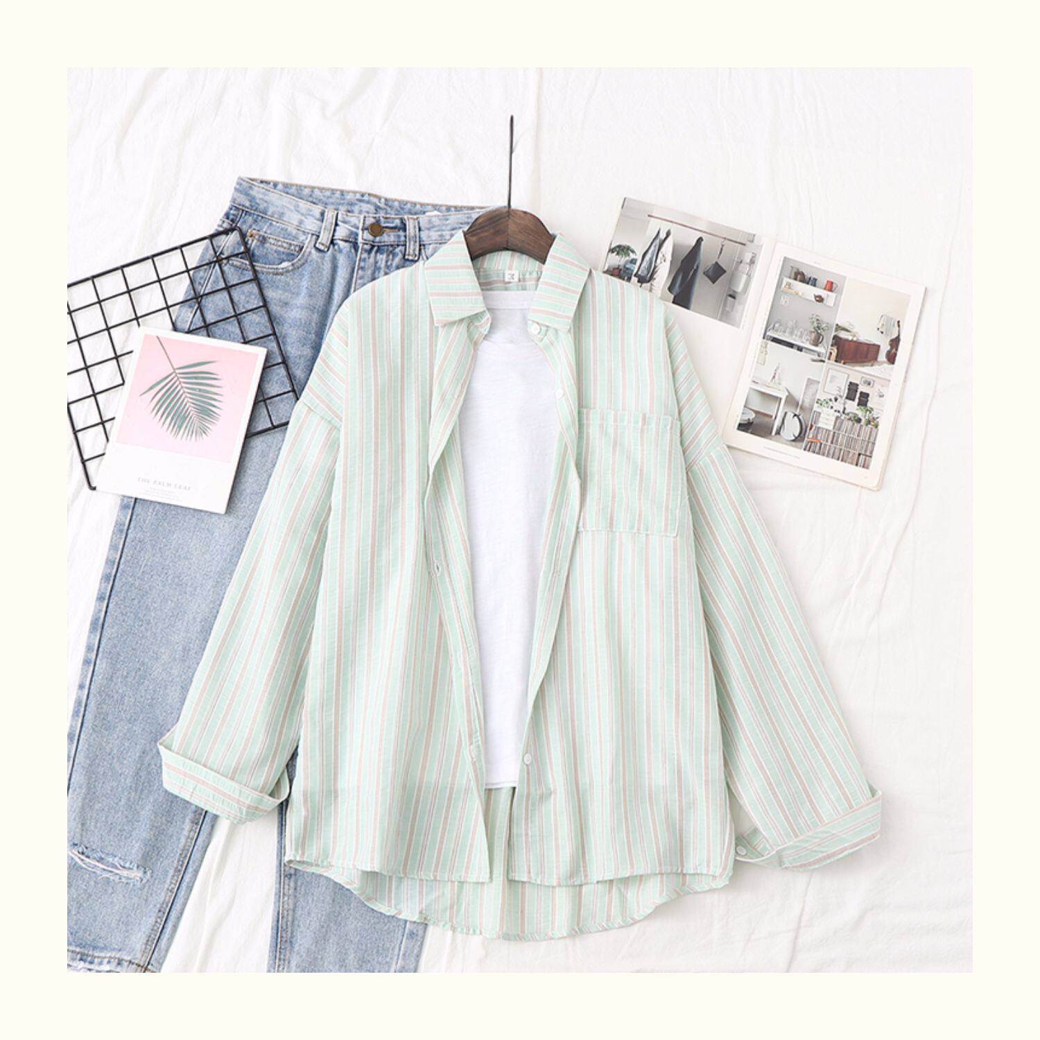 Ретро рубашка, тонкая летняя одежда, в корейском стиле, защита от солнца