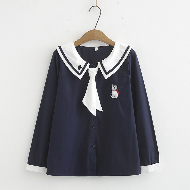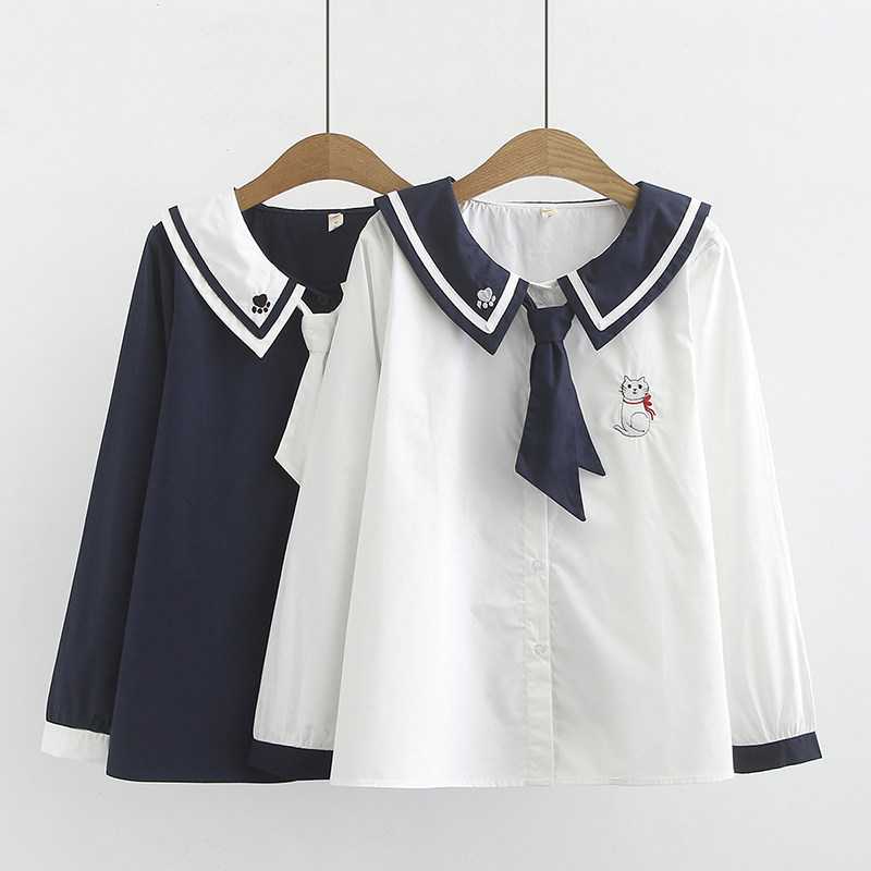 Осенняя японская военно-морская рубашка для школьников и студентов, с вышивкой
