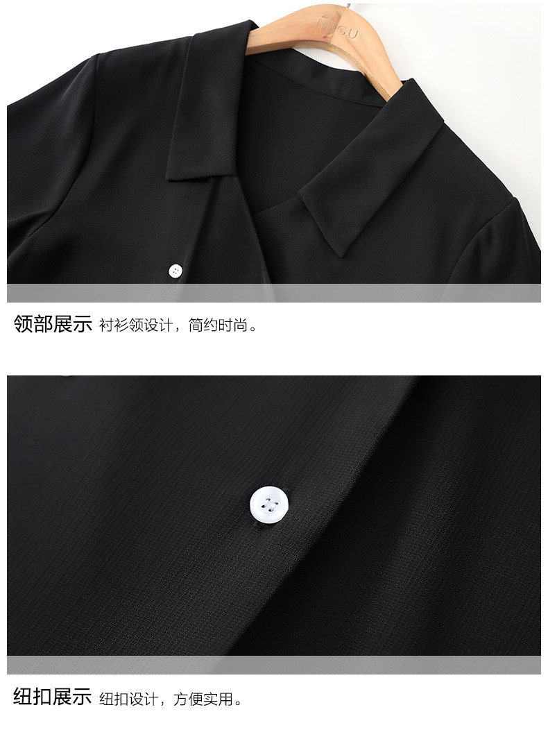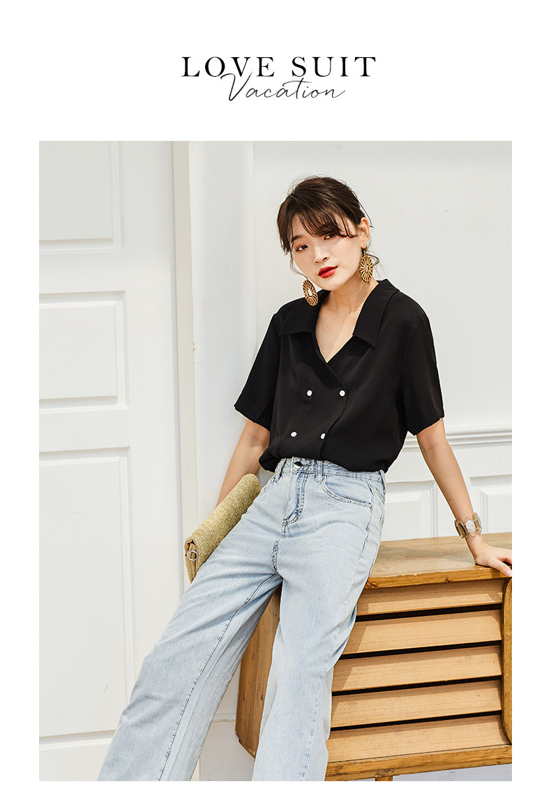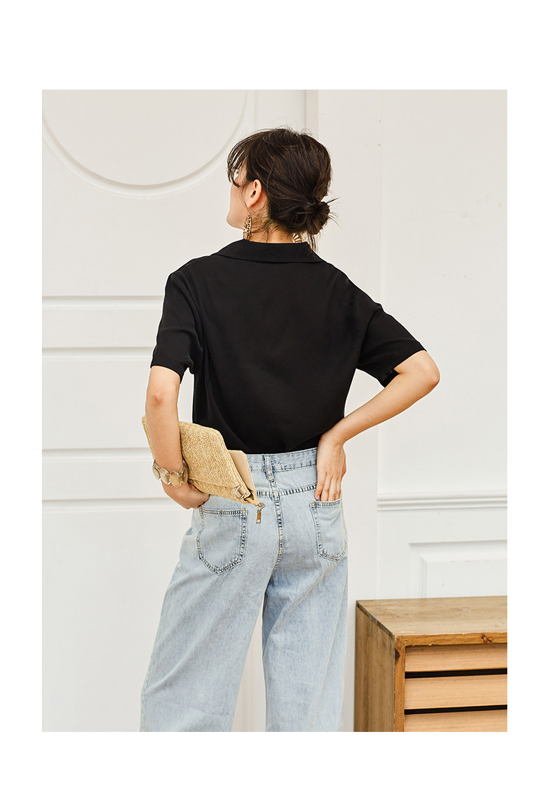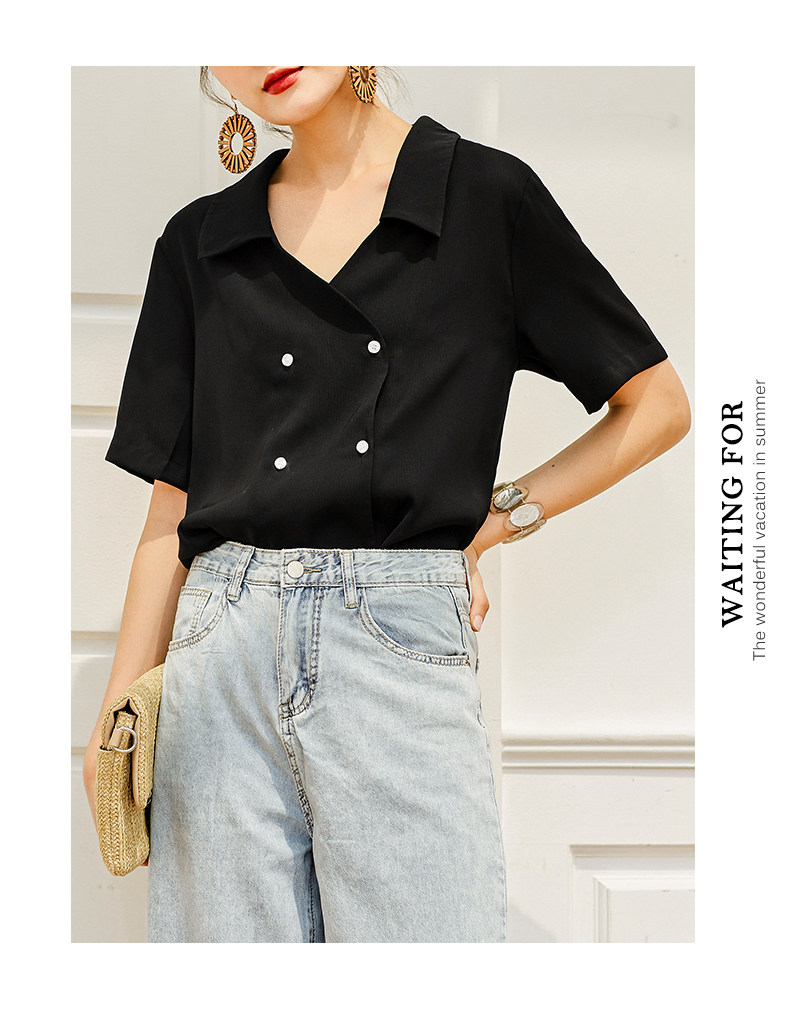 弥古 Черная ретро шифоновая приталенная рубашка, французский стиль, V-образный вырез, яркий броский стиль, короткий рукав