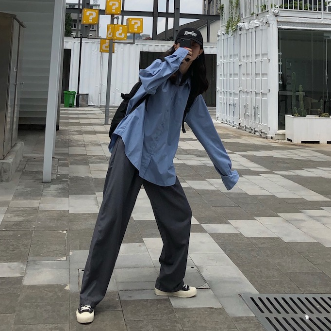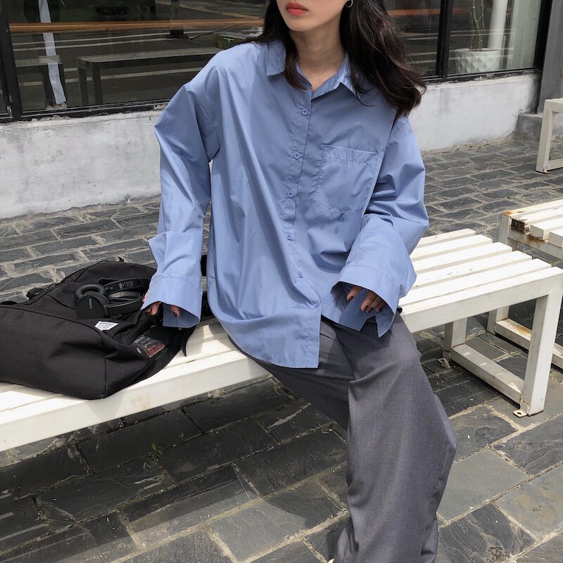 Летний тонкий дизайнерский лонгслив, синяя рубашка, куртка, тренд сезона, оверсайз, защита от солнца