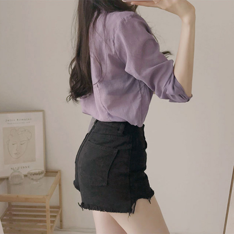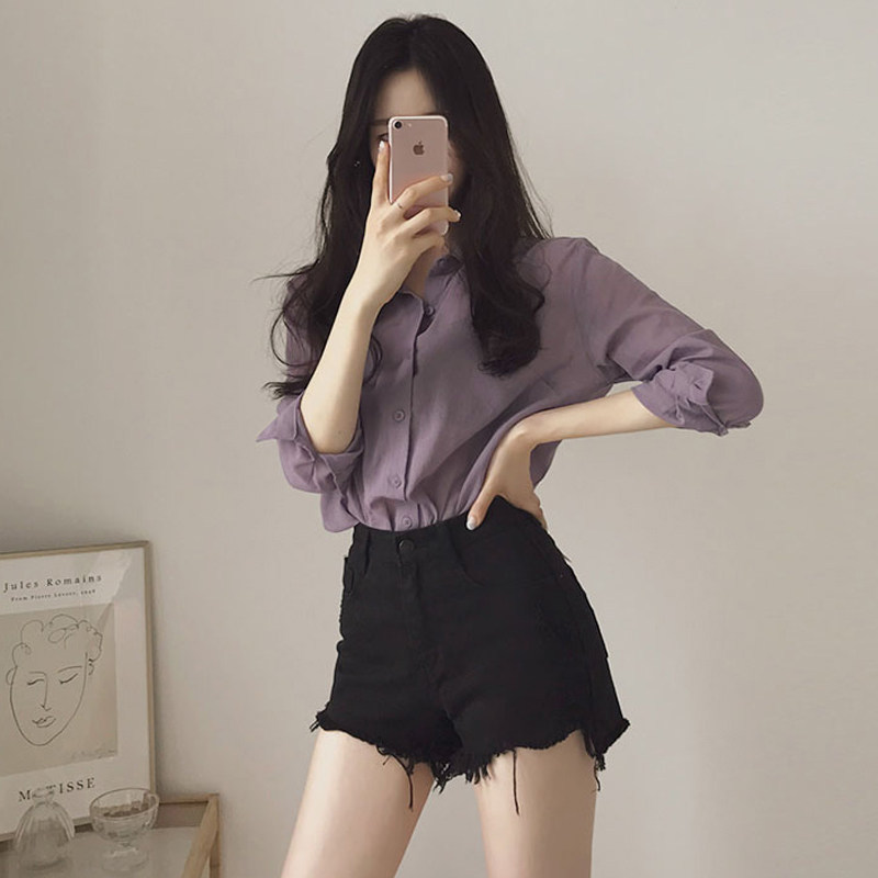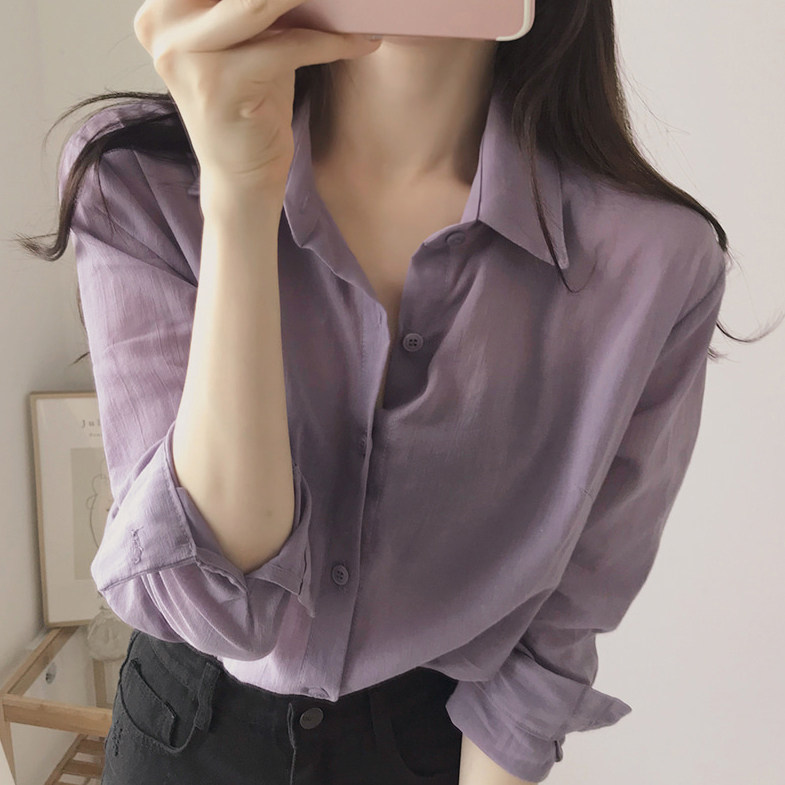 Сиреневая цветная дизайнерская модная ретро рубашка, французский стиль, изысканный стиль, тренд сезона, в западном стиле