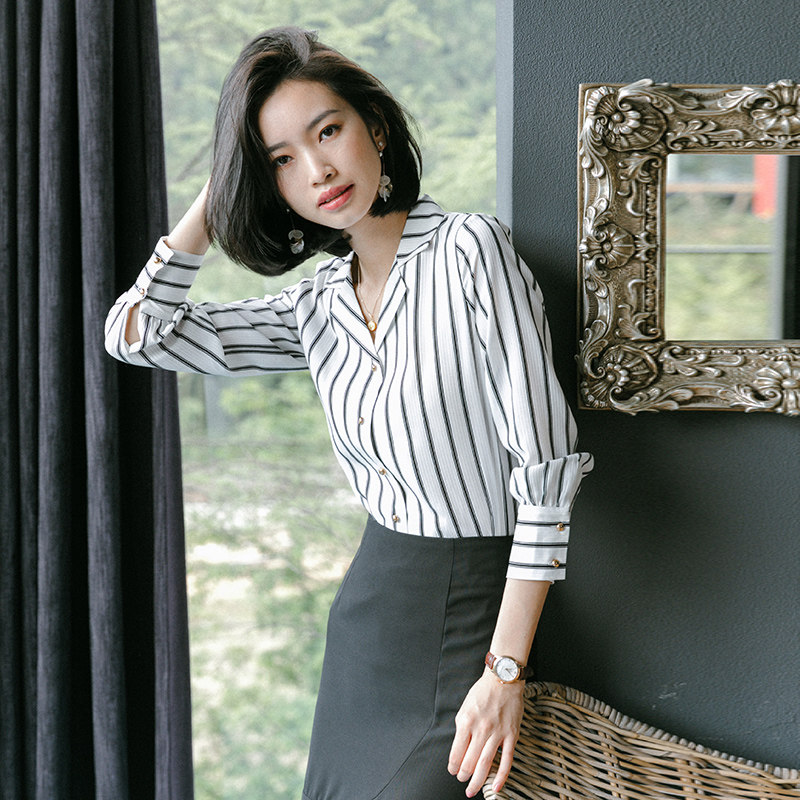Модная осенняя рубашка, лонгслив, V-образный вырез, в корейском стиле