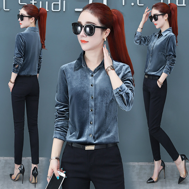 Бархатный лонгслив, весенняя модная утеплённая рубашка, коллекция 2021, тренд сезона, в корейском стиле