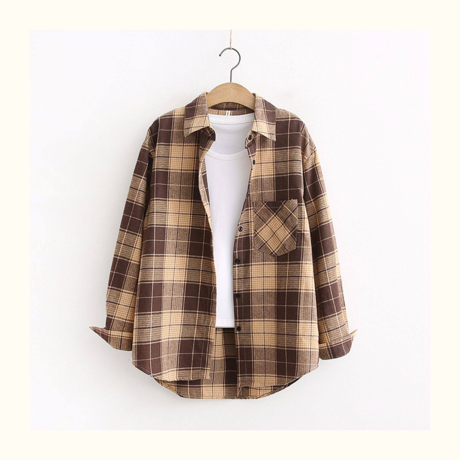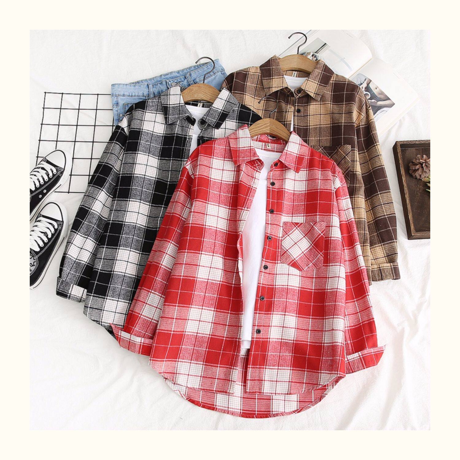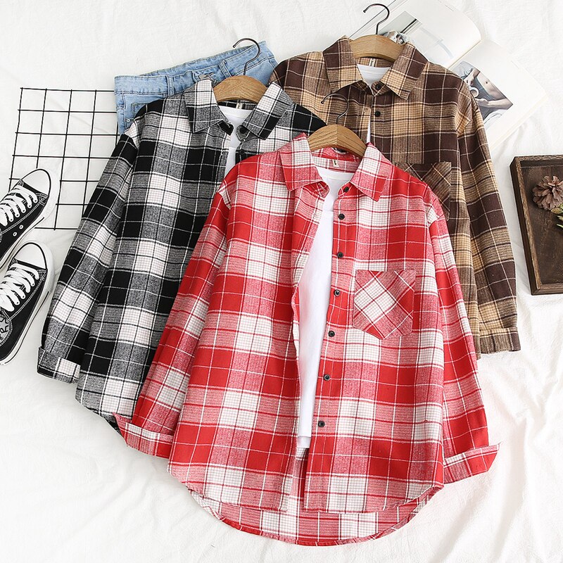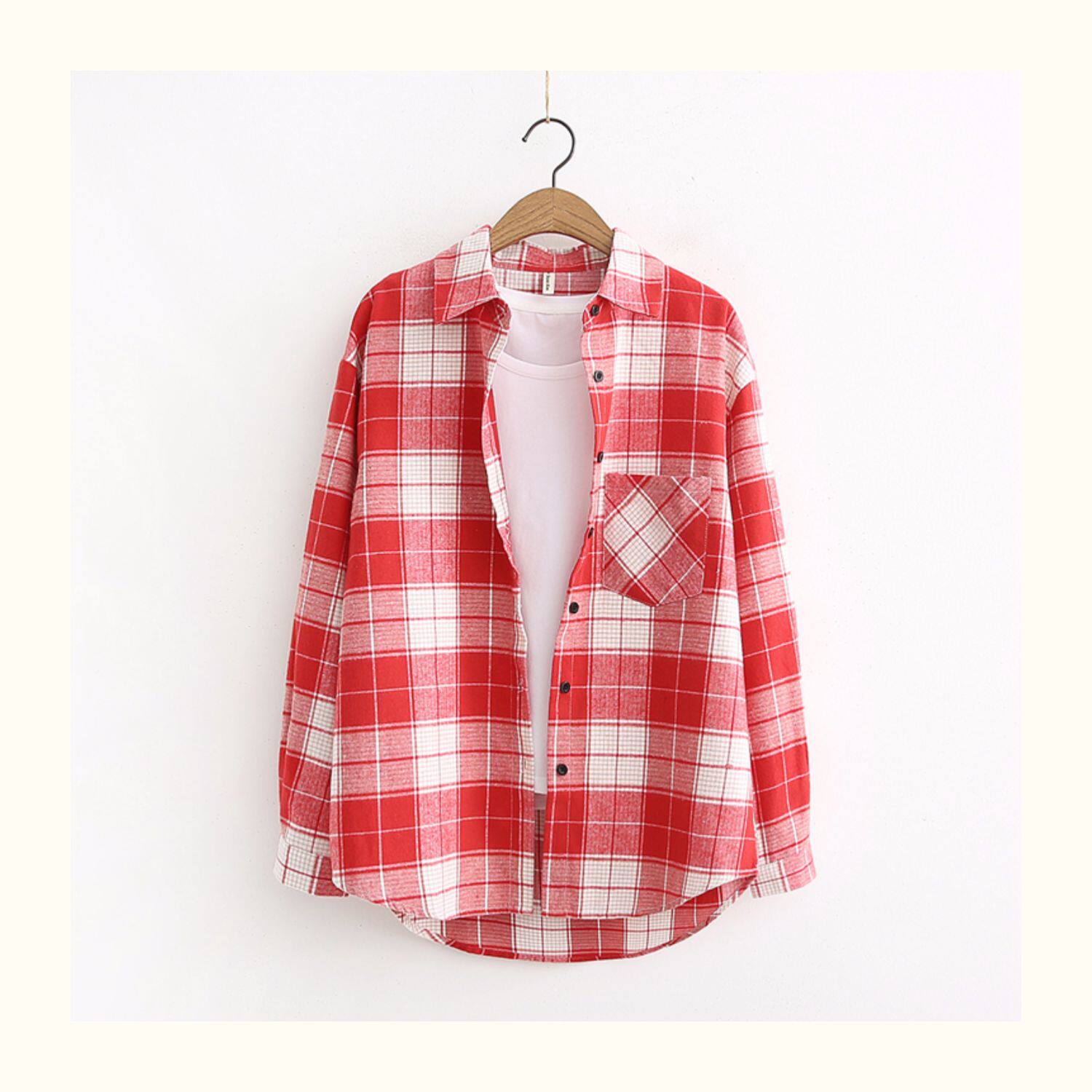 Рубашка, красная цветная длинная ретро куртка для школьников и студентов, свободный крой, 2019, средней длины