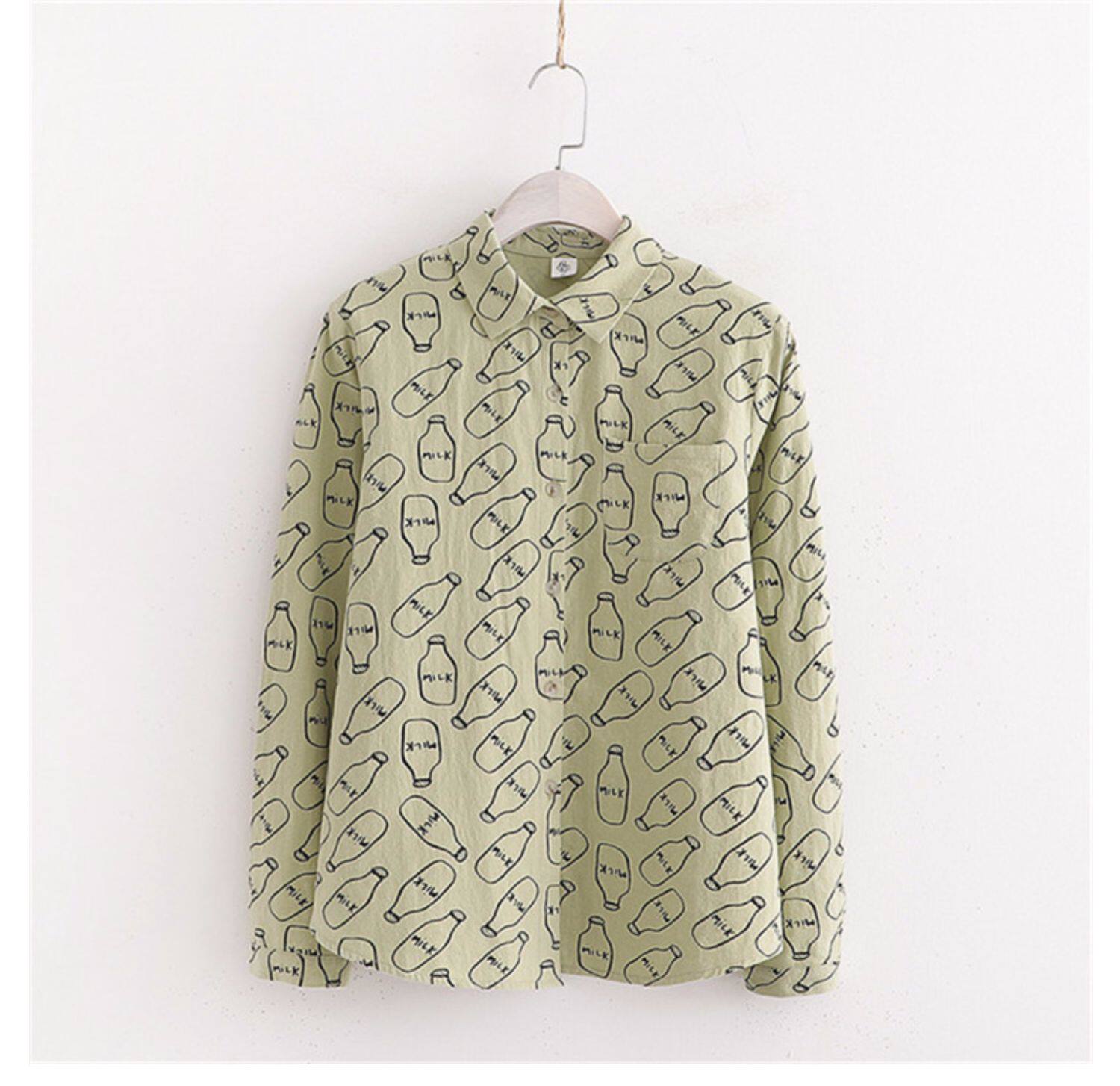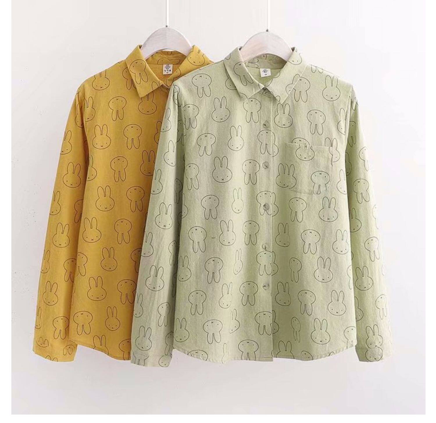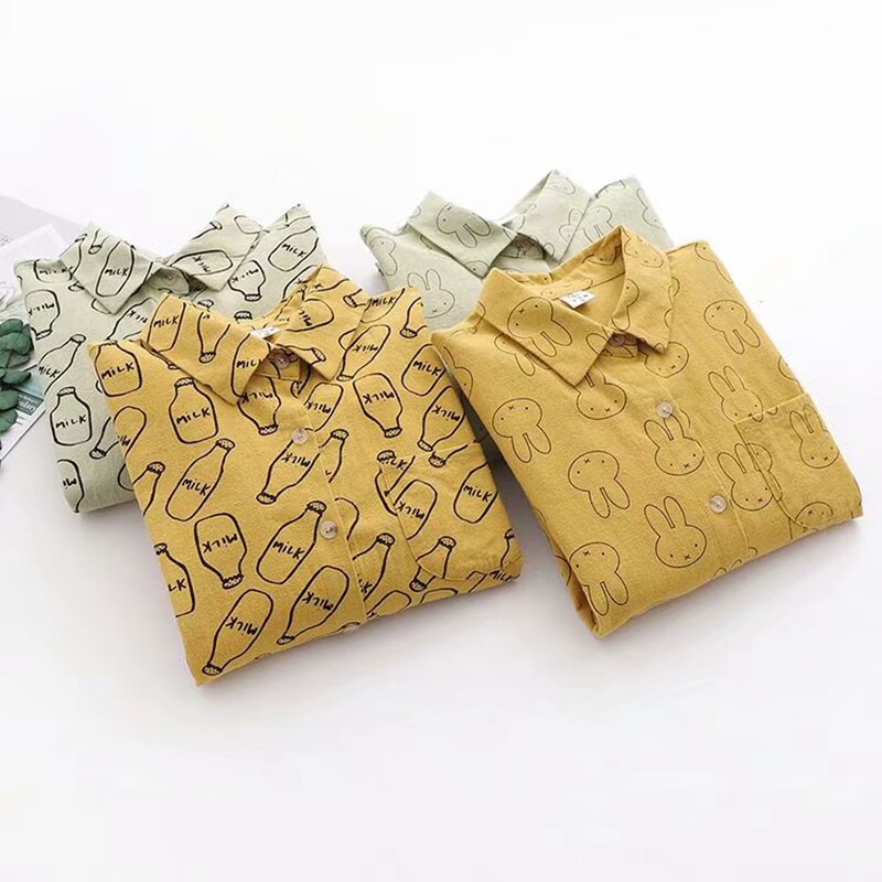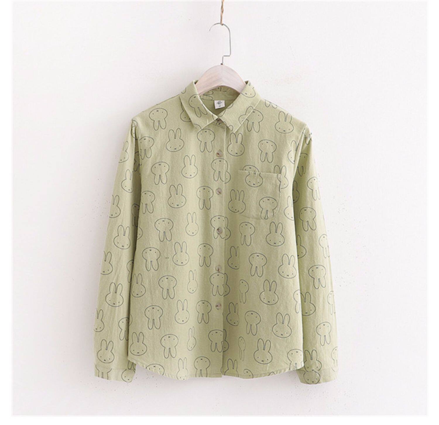 Японский свежий хлопковый милый кролик, осенний лонгслив, осенняя рубашка, свободный крой