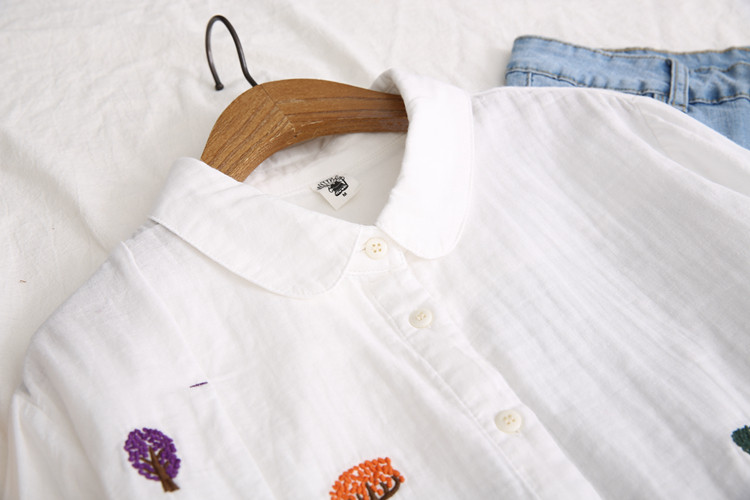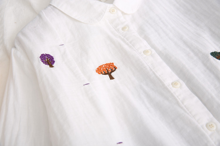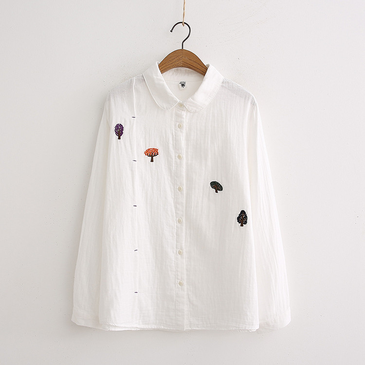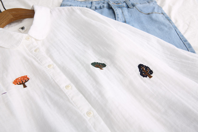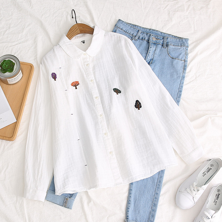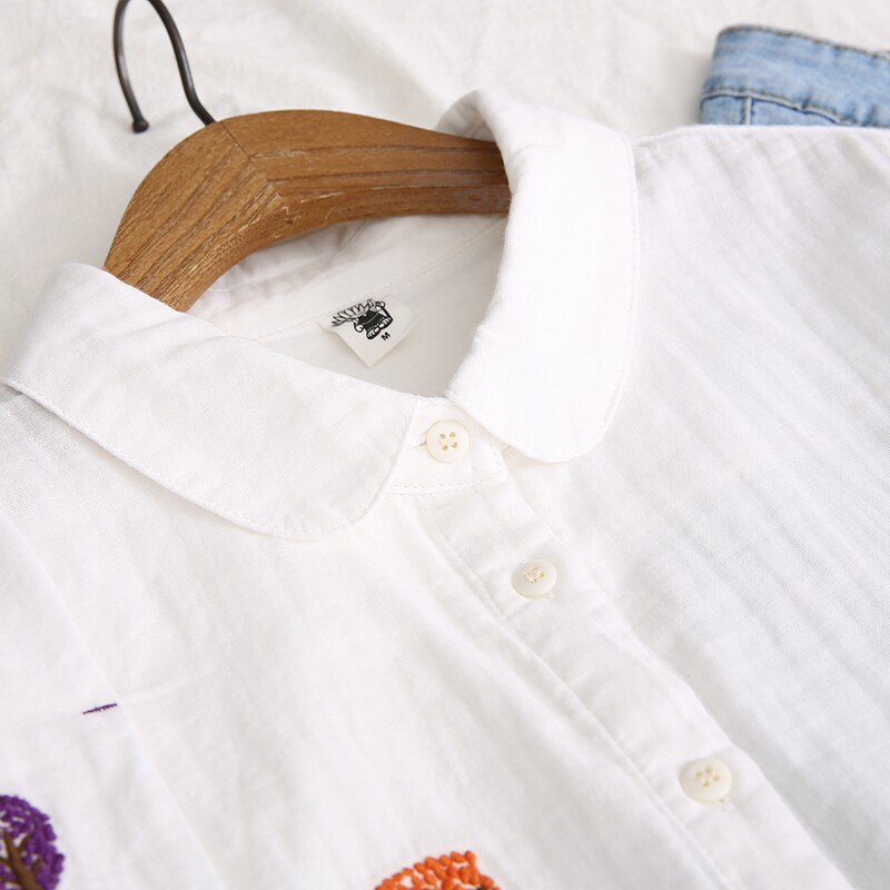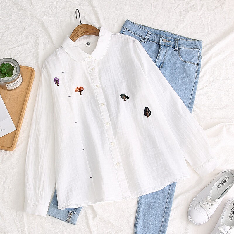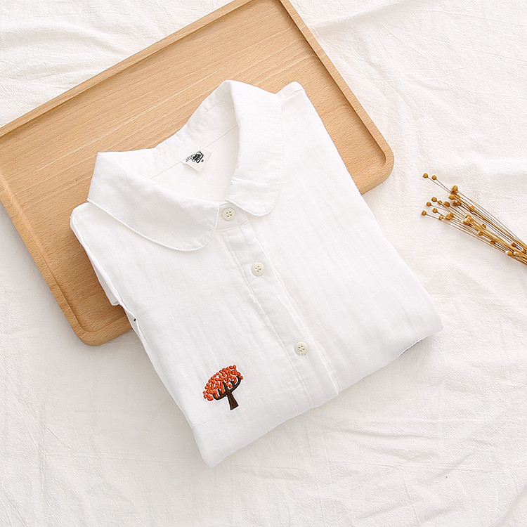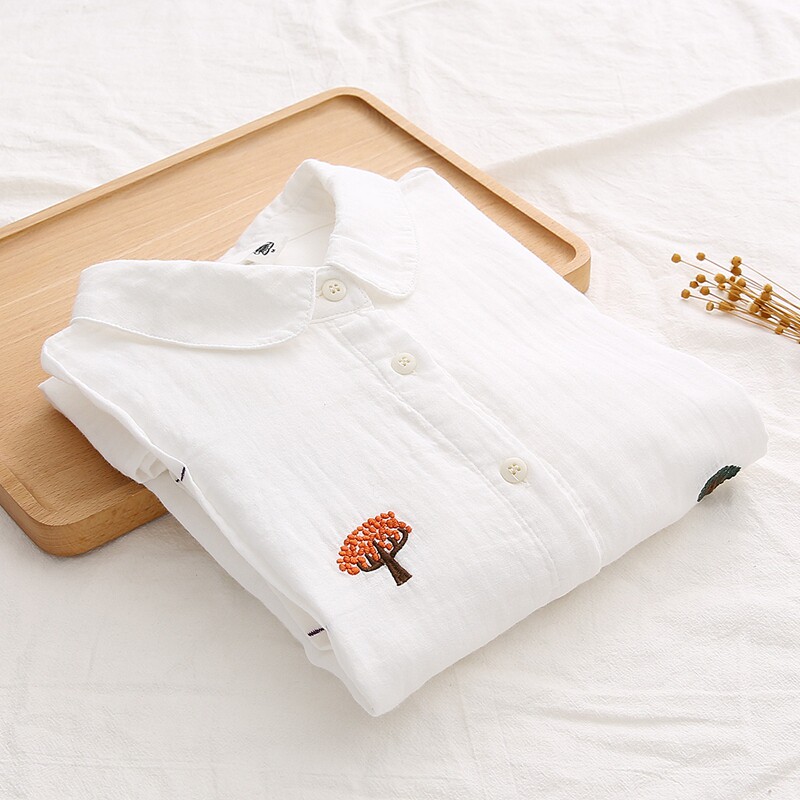 Японская свежая хлопковая базовая рубашка, с вышивкой