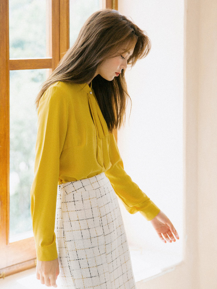Дизайнерская рубашка с бантиком, осенний лонгслив, тренд сезона, 2020, свободный крой, облегающий крой