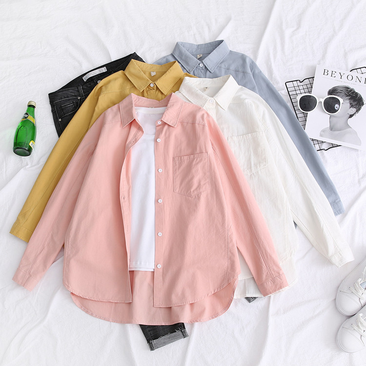 Осенняя рубашка, длинный лонгслив, 2020, в корейском стиле, оверсайз, средней длины