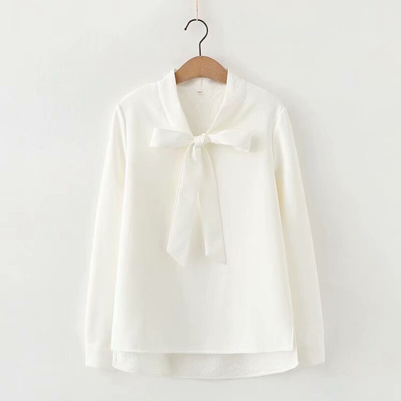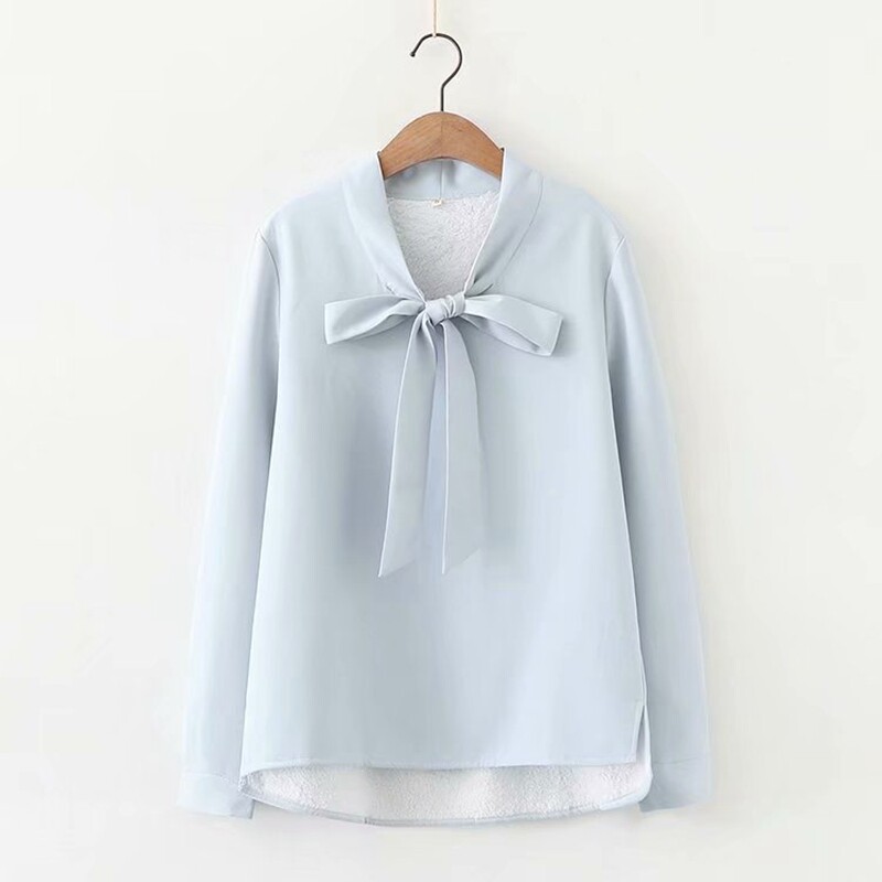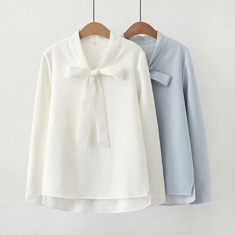 Рубашка с бантиком, утепленный базовый шифоновый лонгслив, увеличенная толщина