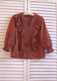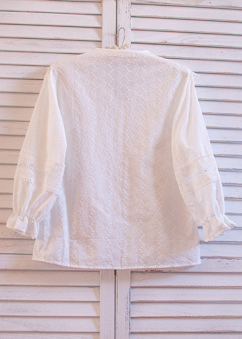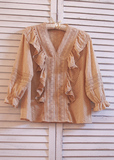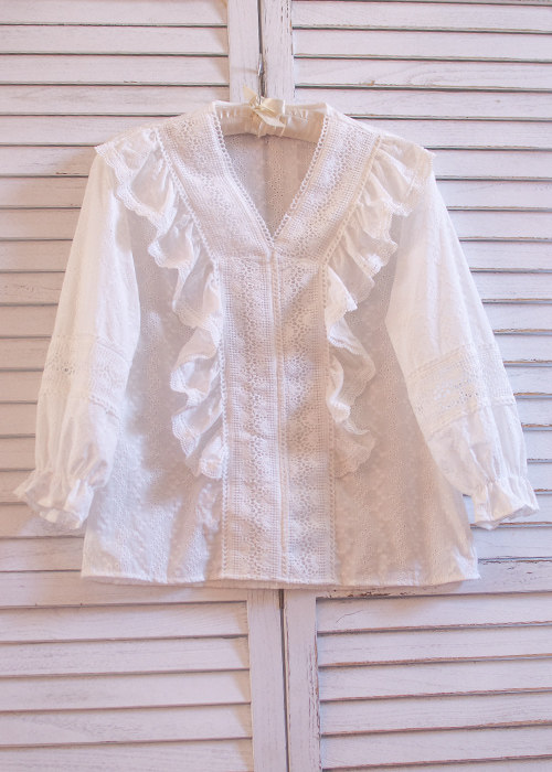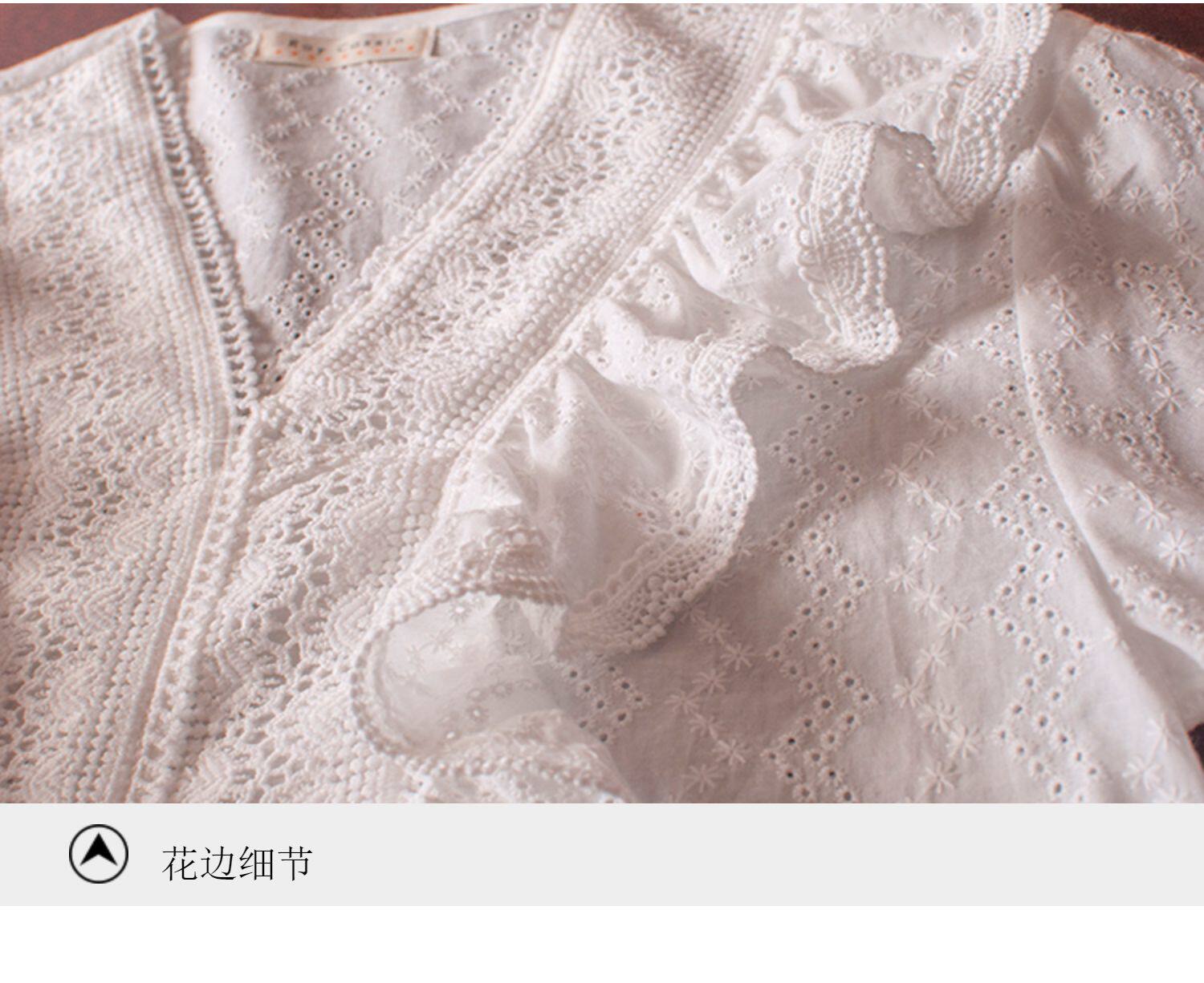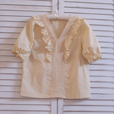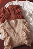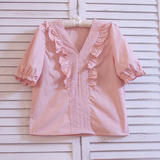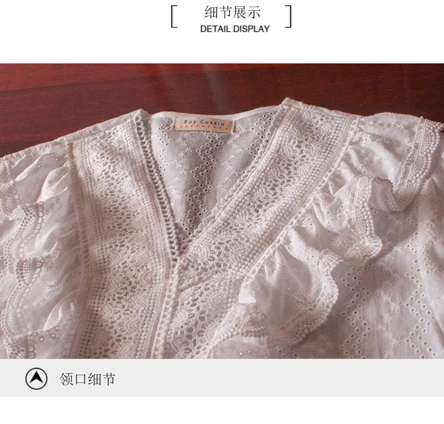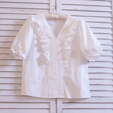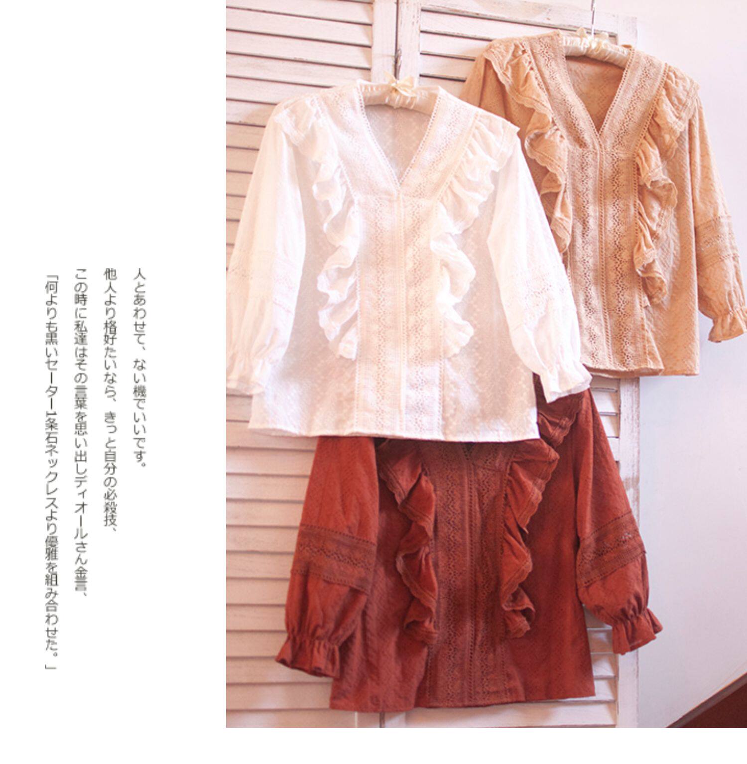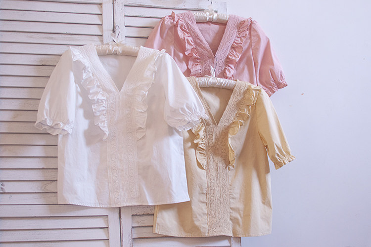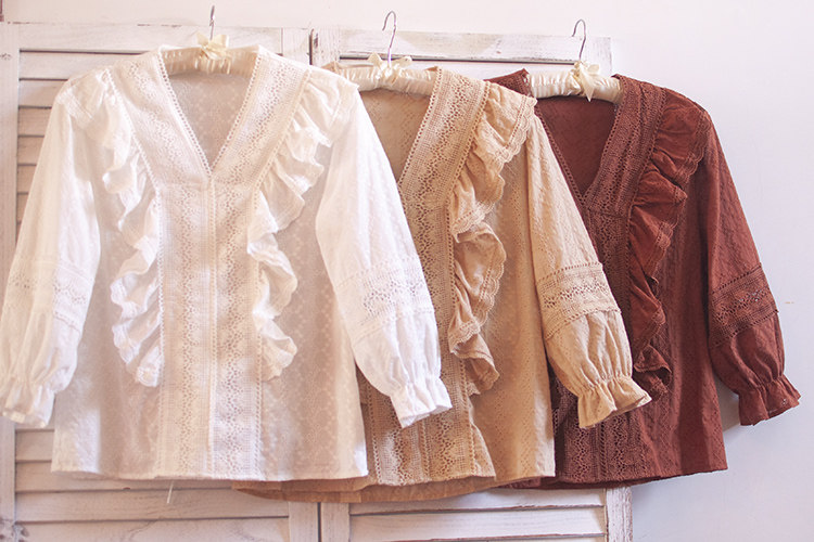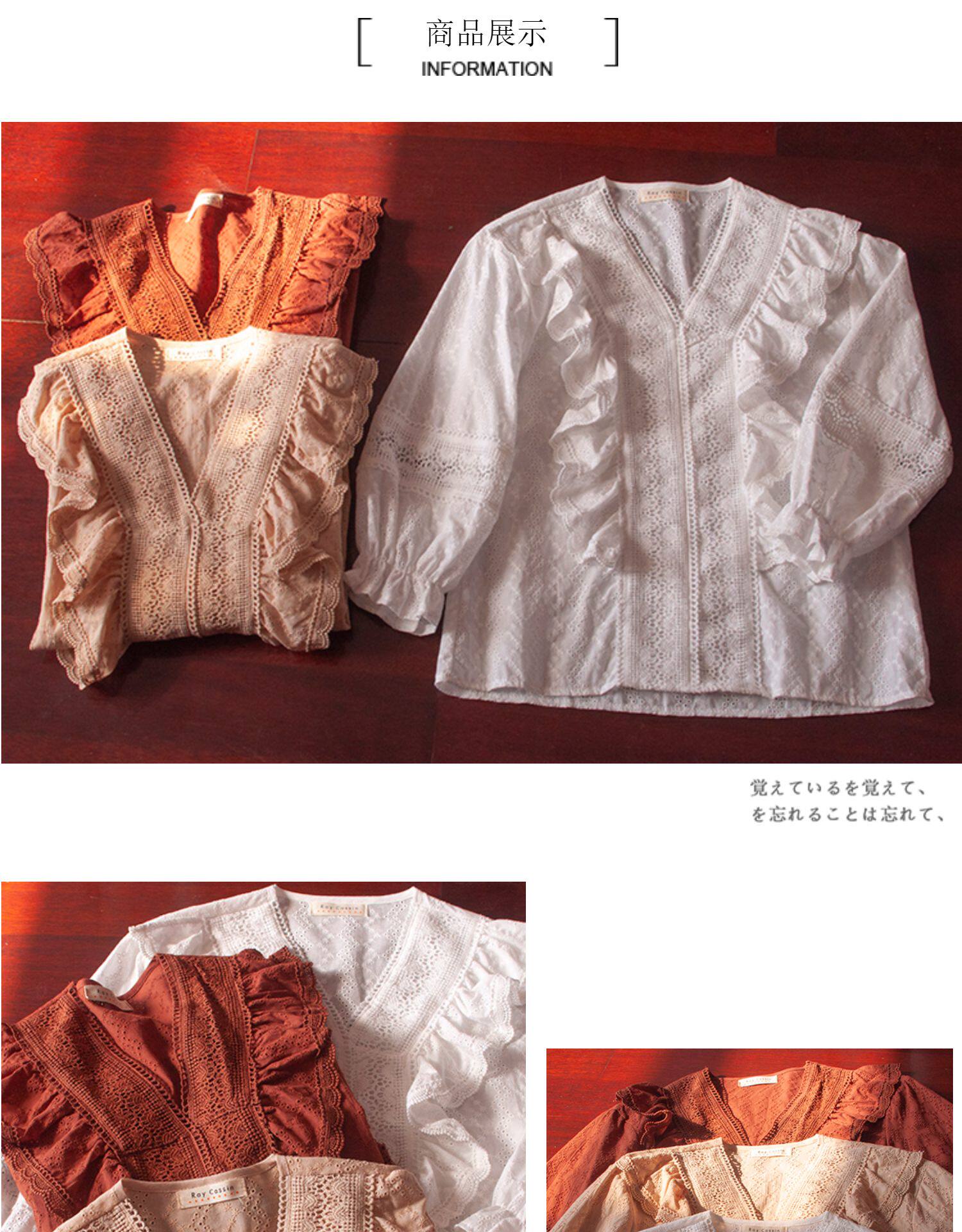 Ретро рубашка, весенний фонарь, Южная Корея, с вышивкой, V-образный вырез, 2023, новая коллекция