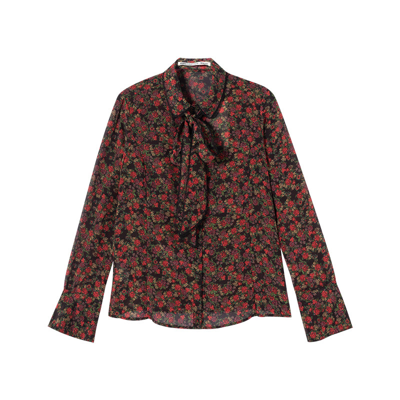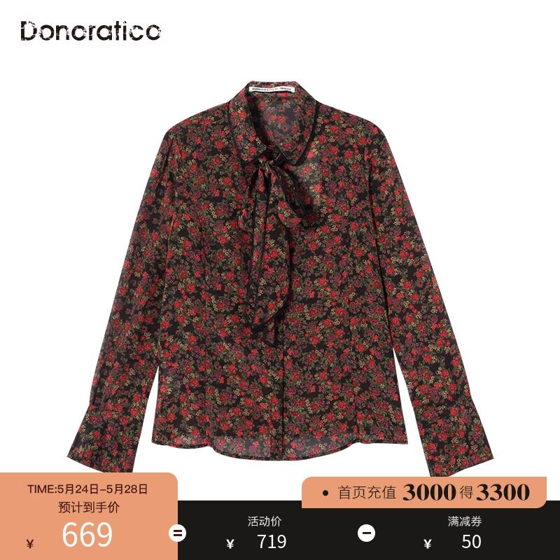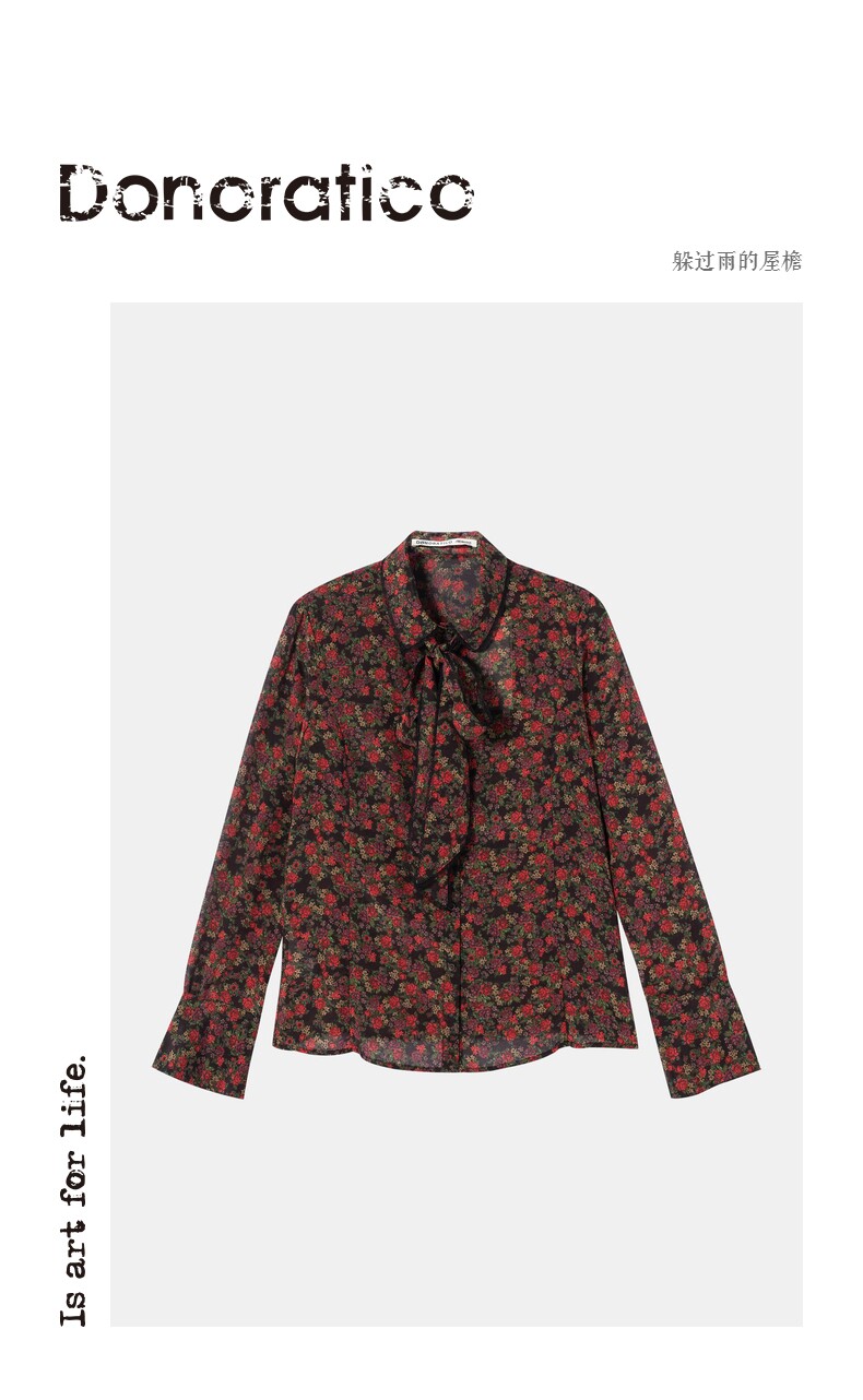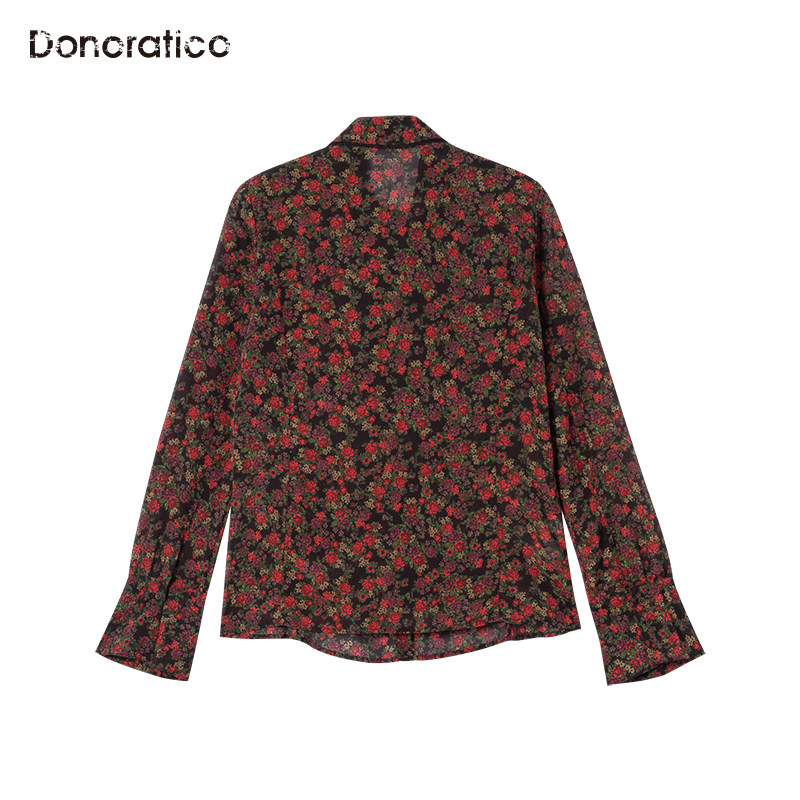 Доноратика Да Йи рок -рок -печатный дворец Женский черный лал романтическая элегантная шелковая рубашка женщина