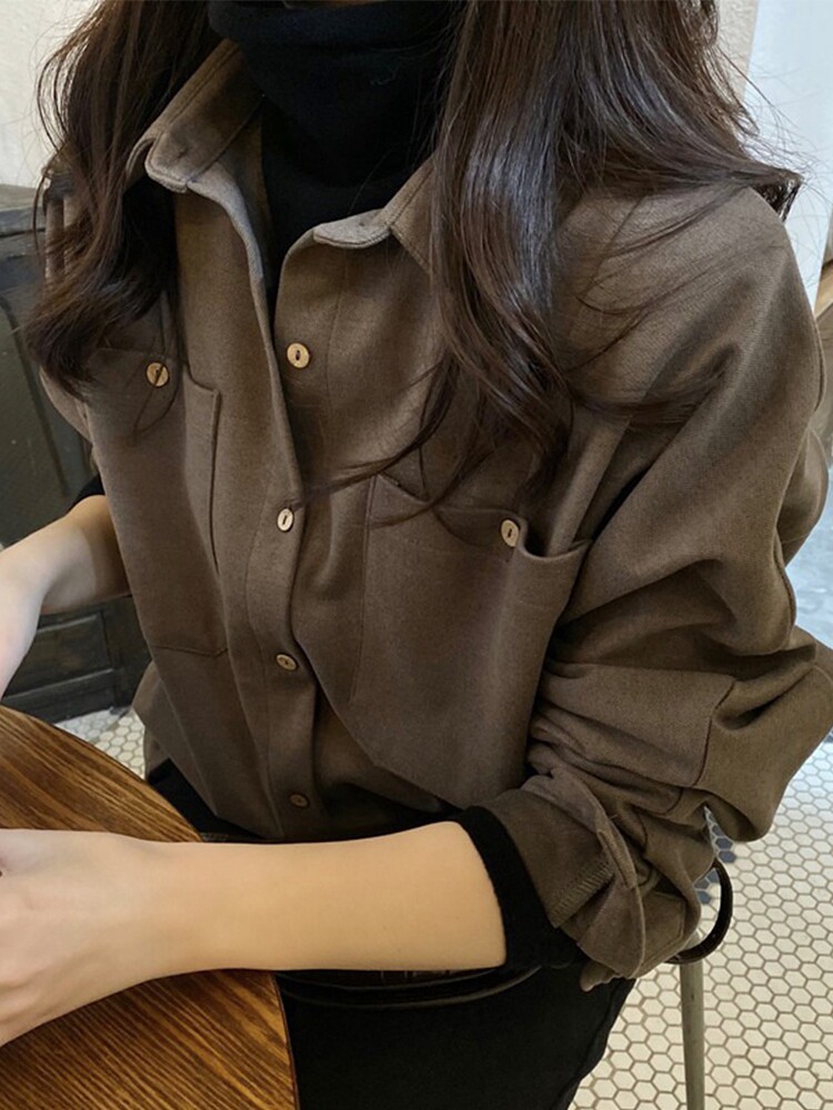 Демисезонная рубашка, ретро лонгслив, коллекция 2022, в корейском стиле, оверсайз