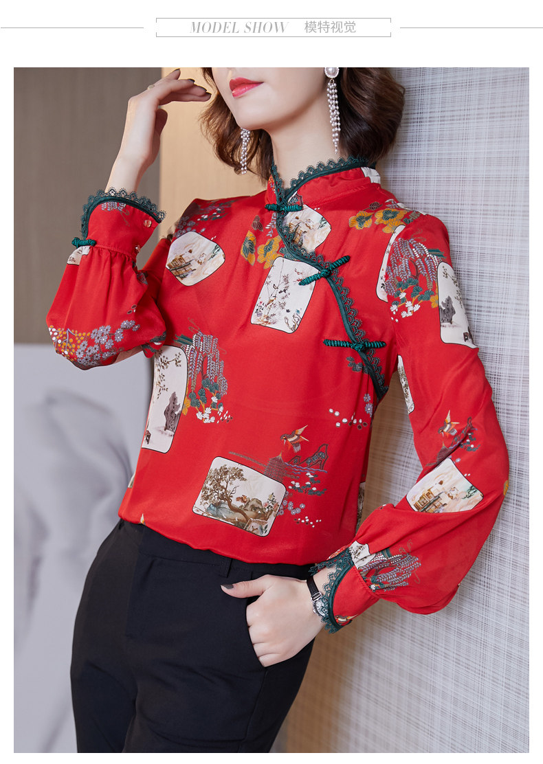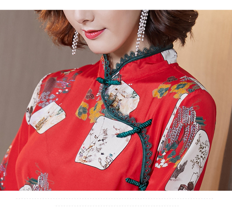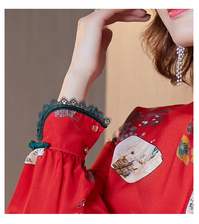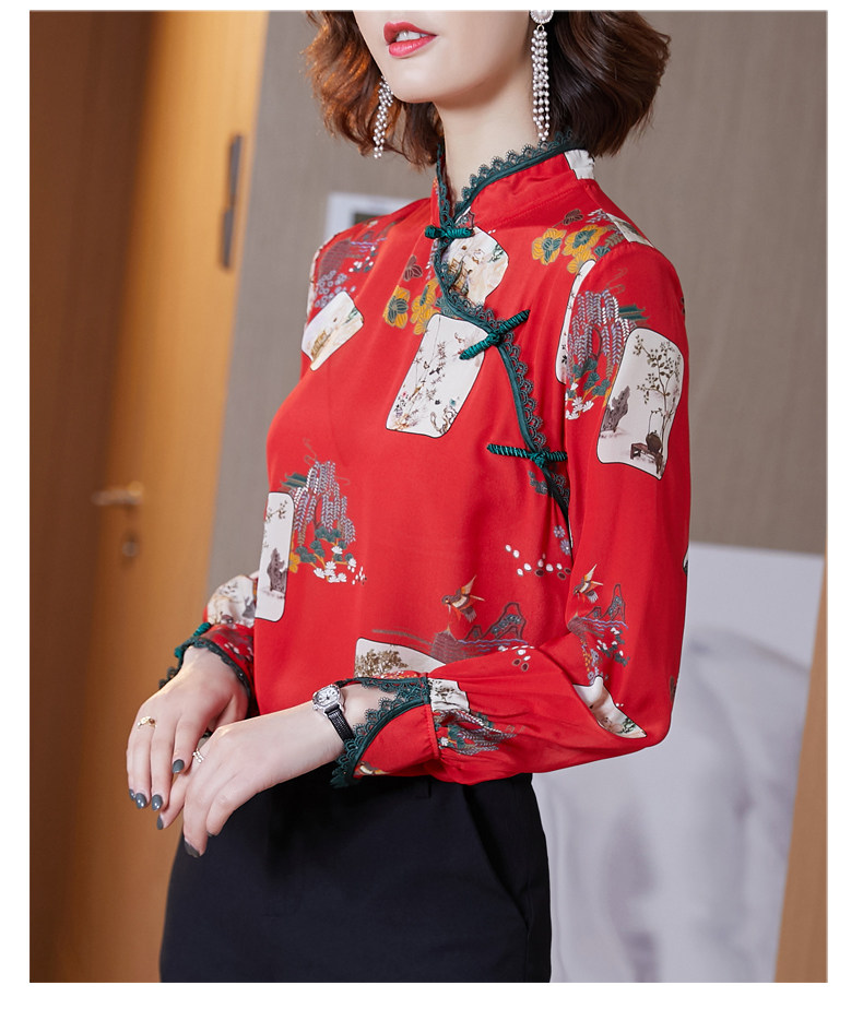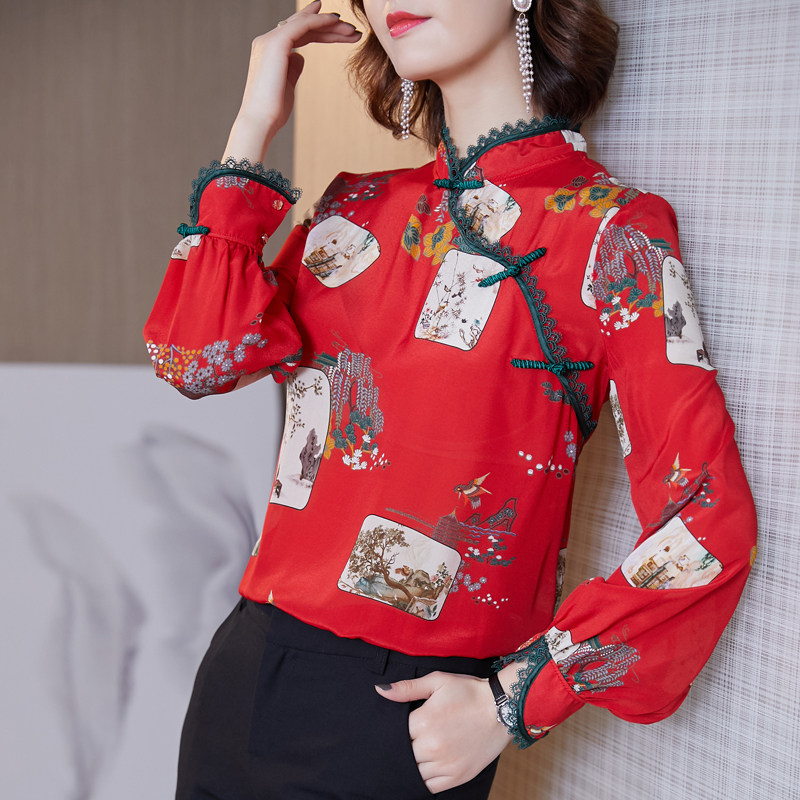 Шелковая красная рубашка, лонгслив, ретро шелковое ципао, 2020, китайский стиль