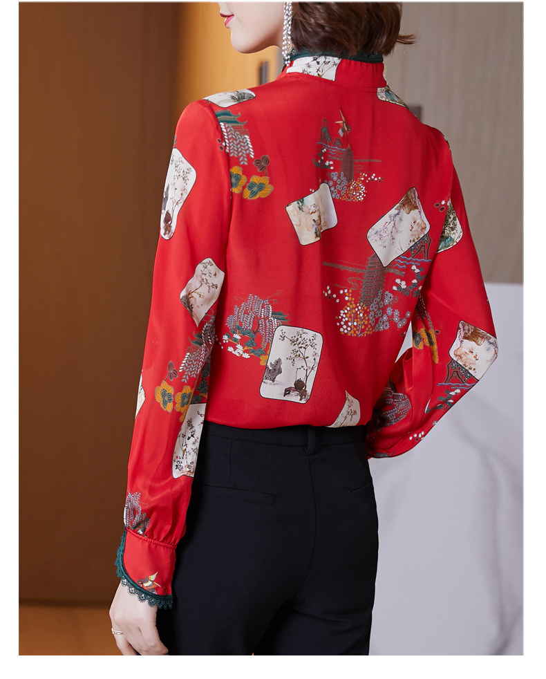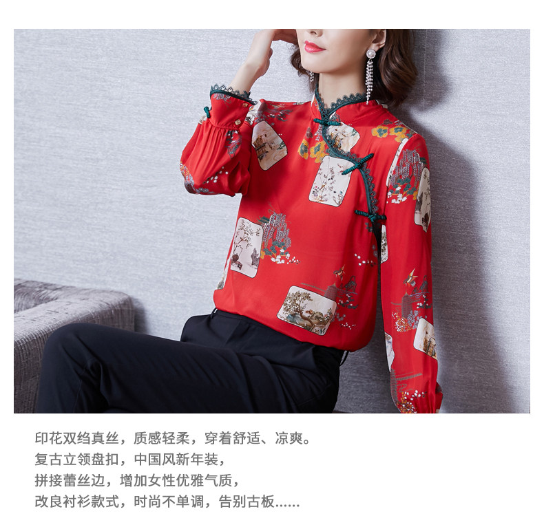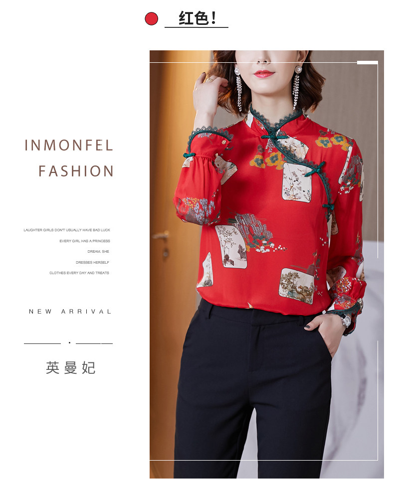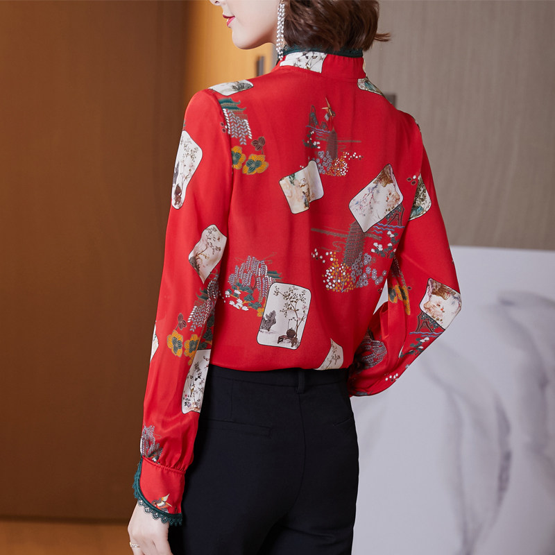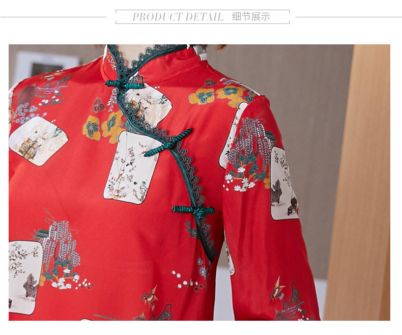 Шелковая красная рубашка, лонгслив, ретро шелковое ципао, 2020, китайский стиль
