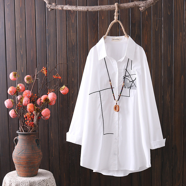 Весенняя рубашка, длинный лонгслив для отдыха, с вышивкой, 2023, большой размер, средней длины