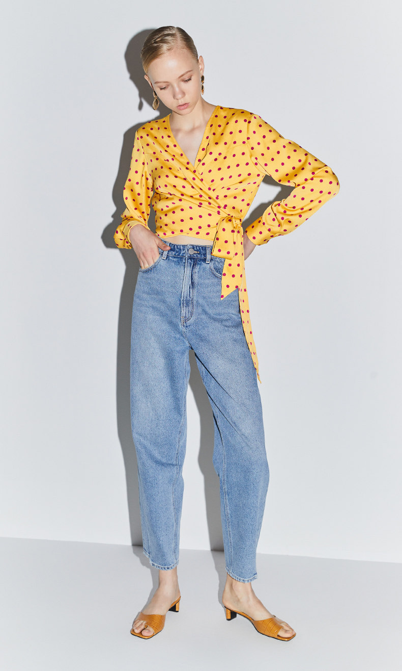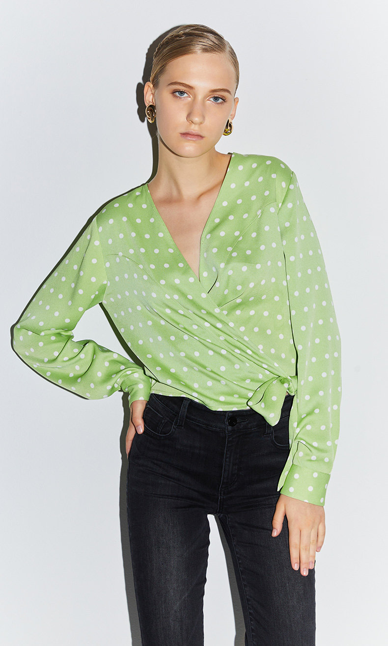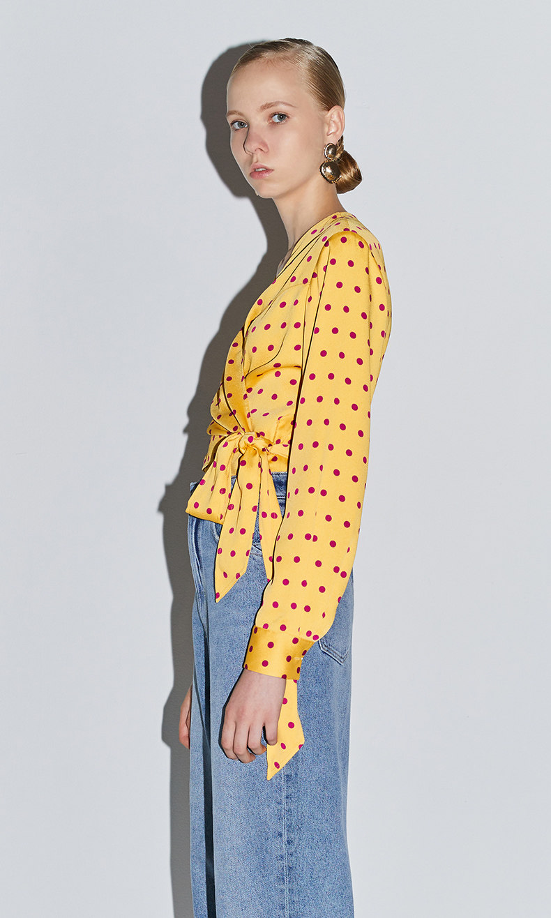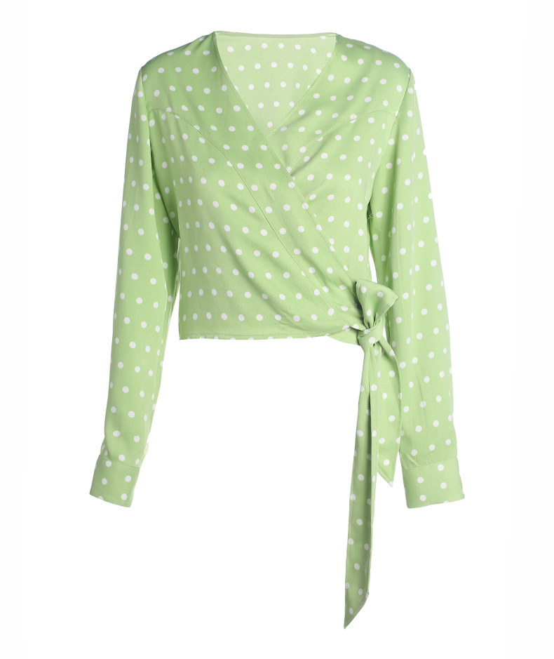 Когда ретро-горошек и элегантный воротник сочетаются с яркими искрами в сочетании с легким и дышащим материалом, это демонстрирует ленивый французский стиль.