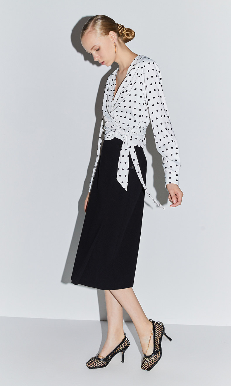 Серия черных ярлыков OU Shili New Spring Wave Dot Print Print Complet Relber Short Former 1rh1014830